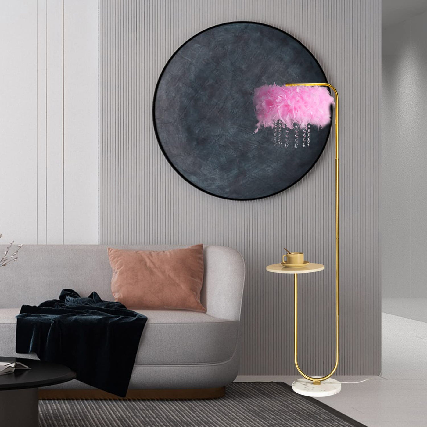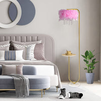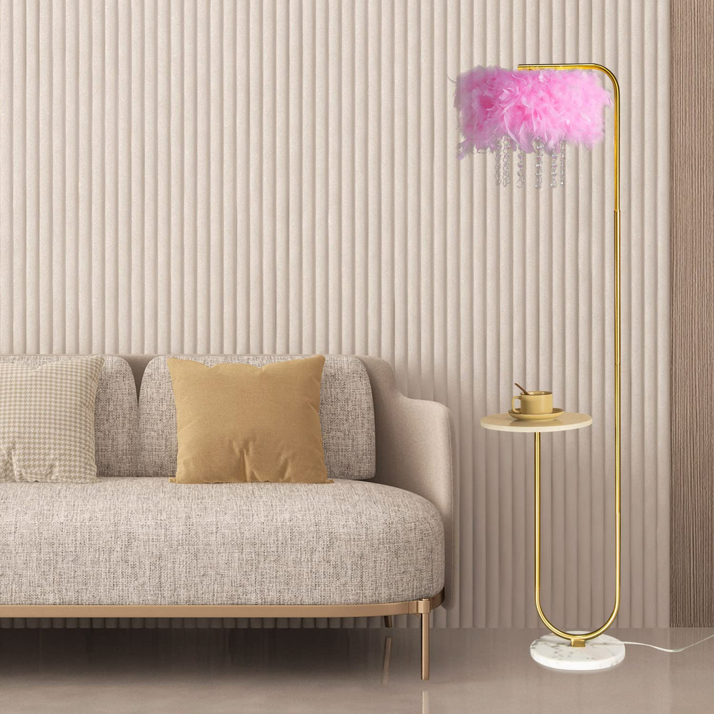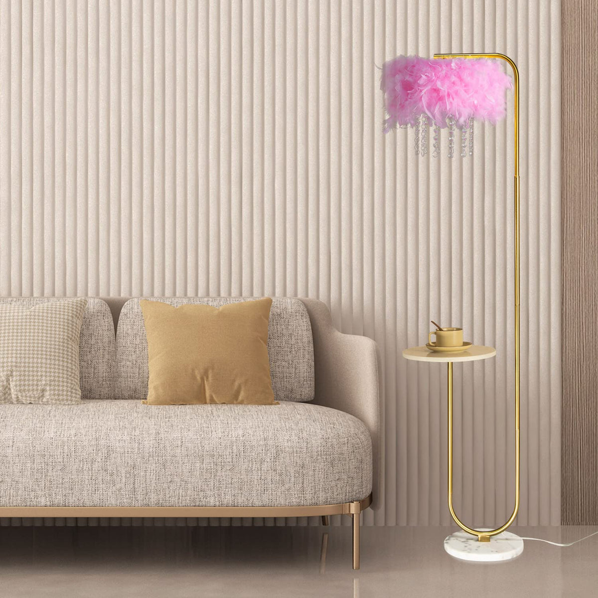 Beaysyty Unique Led Pink Feather Floor Lamp With Tray,Ostrich Feather Stand Lamp,Living Room Bedroom Office Shop Window Decorati