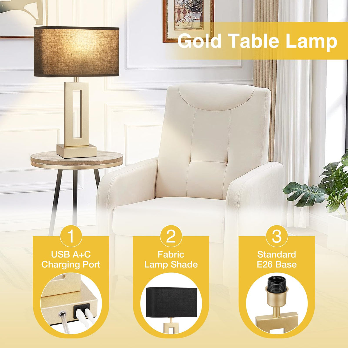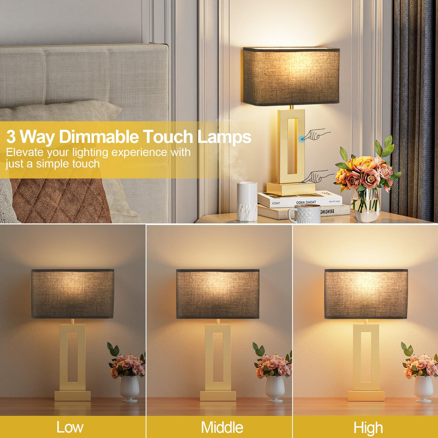 Bedroom Table Lamps Set Of 2 - Black Gold Touch Bedside Lamps With Usb C+A, 3 Way Dimmable Gold Lamp For Nightstand, Modern Nigh