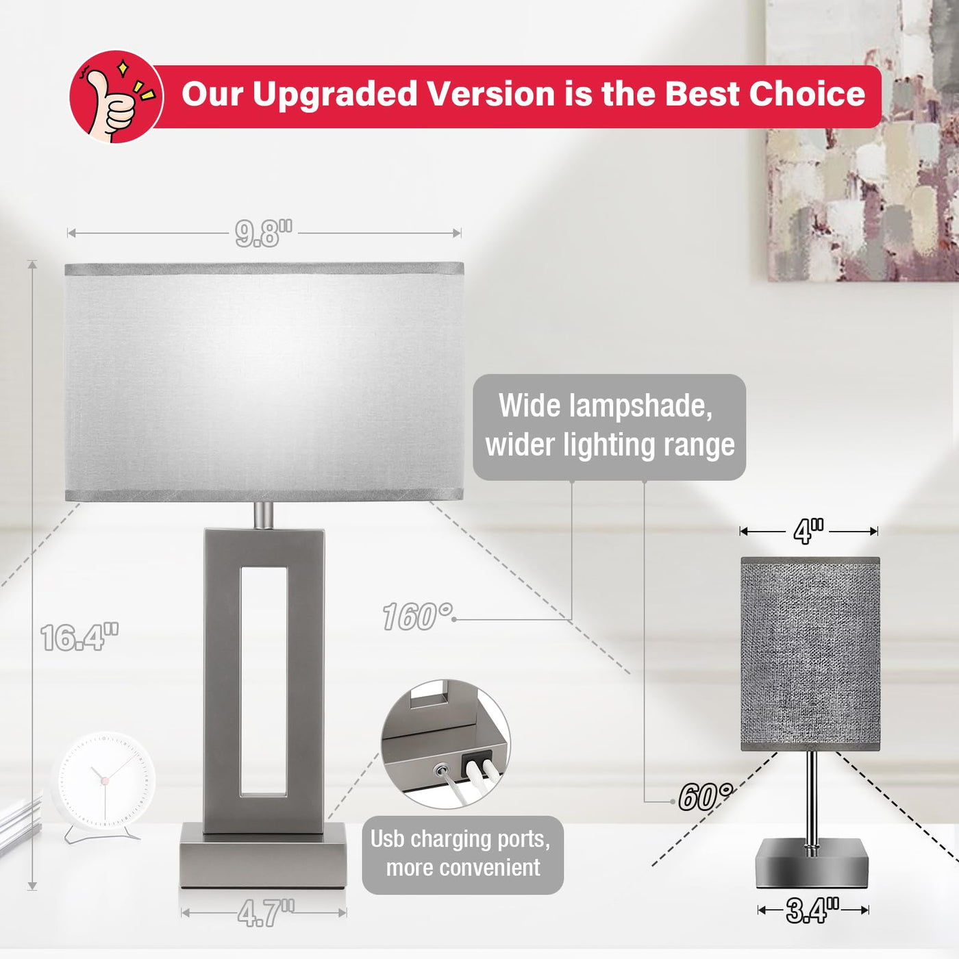 Bedroom Table Lamps Set Of 2 - Grey Touch Bedside Lamps With Usb C+A, 3 Way Dimmable Gold Lamp For Nightstand, Modern Night Stan