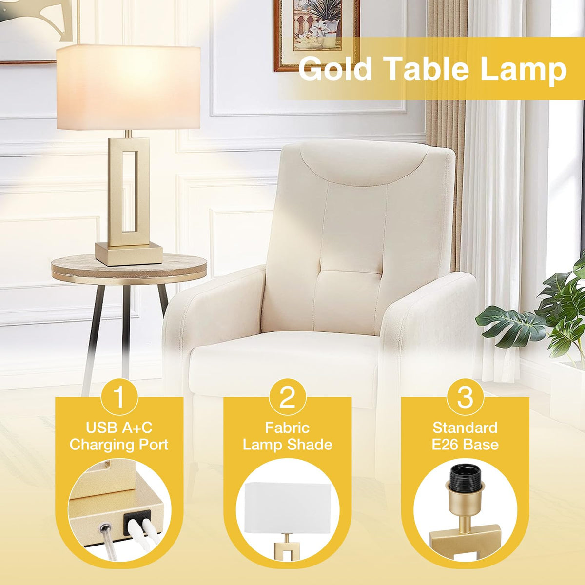 Bedroom Table Lamps Set Of 2 - Touch Bedside Lamps With Usb C+A, 3 Way Dimmable Gold Lamp For Nightstand, Modern Night Stands La