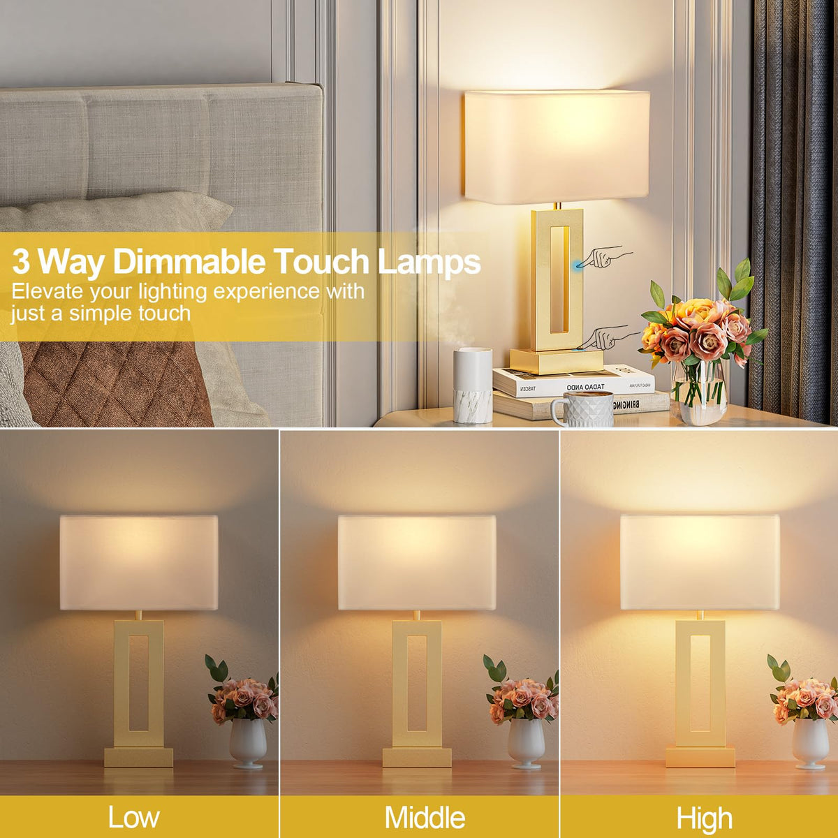 Q: How does the touch control feature work on these lamps?A: The touch control feature allows you to adjust the brightness with a simple touch on the lamp's body or base. You can choose from three brightness levels: 25% for a soft ambiance, 60% for reading, or 100% for full illumination.