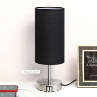 Bedside Lamp With Usb Port - Touch Control Table Lamp For Bedroom Wood 3 Way Dimmable Nightstand Lamp With Round Black Shade For