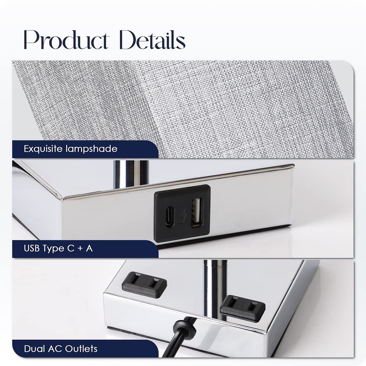Illuminate Your Bedroom With This Convenient Bedside Table Lamp. This Touch-Sensitive Lamp Features Usb C+A Charging Ports And Ac Outlets, Combining Functionality With Elegance. With A 3-Way Dimmable Function, You Can Easily Adjust The Brightness To Suit Your Needs. Equipped With A 6W Led Bulb Providing 300 Lumens Of Light, This Lamp Ensures A Warm And Inviting Ambiance. Estimated To Cost $1.21 Per Year Based On 5 Hours Of Daily Use, It Offers Both Efficiency And Style. Complete With Included Bulbs, This Lamp Is A Practical Addition To Your Living Space, Perfect For Enhancing Your Bedroom Or Living Room Decor.