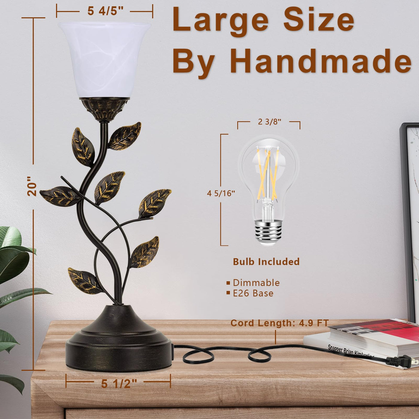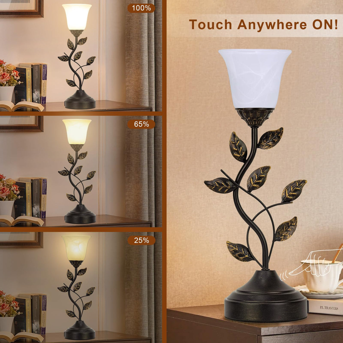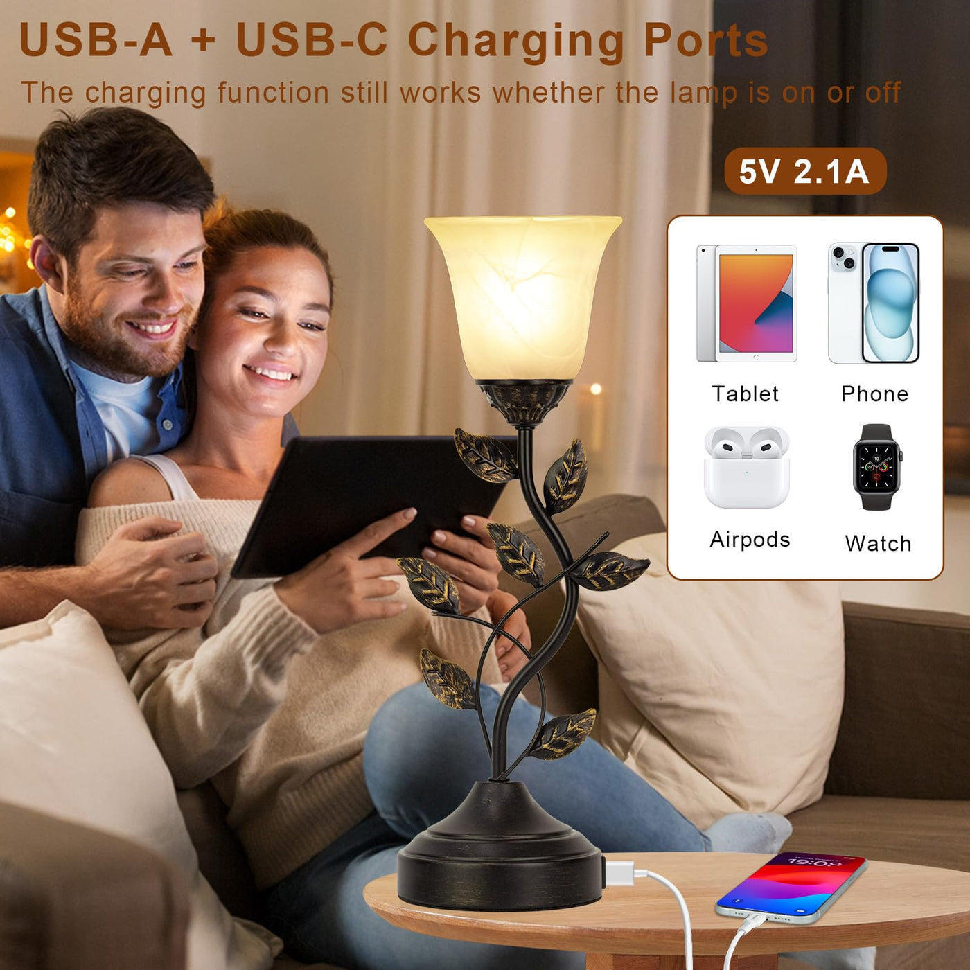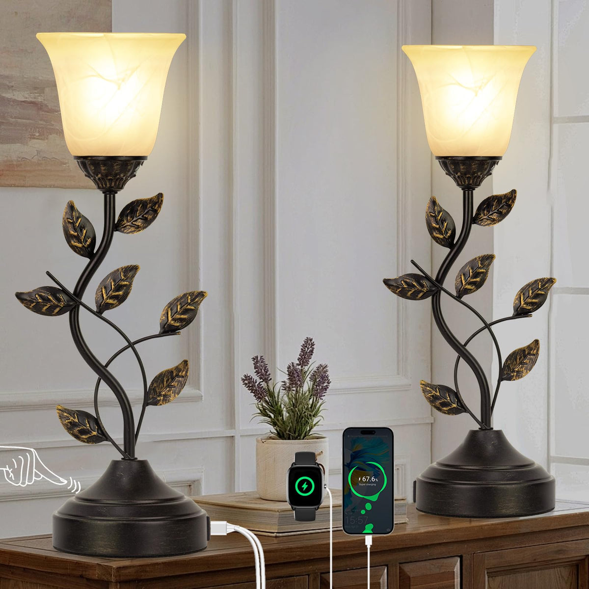 Specifications: Material: Metal + Glass Color: Bronze Base + White Glass Lampshade Voltage: 110-120V Bulb Base: E26 Medium Dimmable: 3 Way Dimmable Bulb: A19 6W 2700K Led Bulb Included Supportive Wattage: 60W Max Swith Type: Touch Control Usb Charging Ports: Usb A And Type C Product Size: 5.9 Inch L X 19.5 Inch H Package Includes: 1 X Glass Lampshade 1 X Metal Lamp Body Unique Lampshade: The Lampshade Of This Touch Control Table Lamp Is Made Of Curved White Glass With A Cloud-Like Texture, Softening The Light For A Warm And Gentle Glow. E26 Lamp Holders: This Table Lamp For Bedroom Features Standard E26 Lamp Holders, Making Bedside Touch Lamp Easy To Install A Variety Of Bulbs. Two Led Bulbs Included. High Stability: The Thickened Base Provides Excellent Stability, Ensuring The Dimmable Bedside Lamp Won'T Tip Over Easily. These End Table Lamps Are Both Aesthetically Pleasing And Long-Lasting. Retro Style: This Touch Table Lamp Boasts A Retro And Elegant Design, Living Room Table Lamp With A Handcrafted Lampshade And Lamp Body That Add A Vintage Charm To Your Home Decor. Durable Finish: The Touch Bedside Lamps Surface Features A Black Brushed Gold Effect, Treated With Brushed, Polished, Electroplated For Strong Resistance To Rust And Corrosion With Bed Lamps For Nightstand. Versatile Lighting: The Night Stand Lamp Ideal For The Bedroom, Living Room, Study, Office, Dining Room, Store, Studio, Or Any Space Where You Need Bright, Stylish Lighting With Touch Control Bedside Lamp. Dimmable Touch Lamp: This Table Lamps Set Of 2 Offer Four Brightness Levels (Low, Medium, High, Off) With A Simple Touch. Tap Anywhere On The Bed Side Lamps Base To Adjust The Light From Dim To Bright Or Turn It Off, Allowing You To Select The Perfect Brightness For Any Task. Touch Lamp With Usb Charging Port Variable Light Capability Makes It Versatile For Various Applications, Meeting Your Needs For Different Lighting Levels. Weighted Lamp Base: We Take Safety Seriously, Which Is Why We'Ve Invested More In The Base Of This Dimmable Nightstand Lamp. The Heavier Base Provides Added Stability, Preventing It From Being Knocked Over By Kids Or Pets. With An Anti-Slip Mat, This Night Stand Lamp For Bedroom Stays Steady Without Wobbling Or Sliding, Ensuring It'S Safe For Everyday Use.