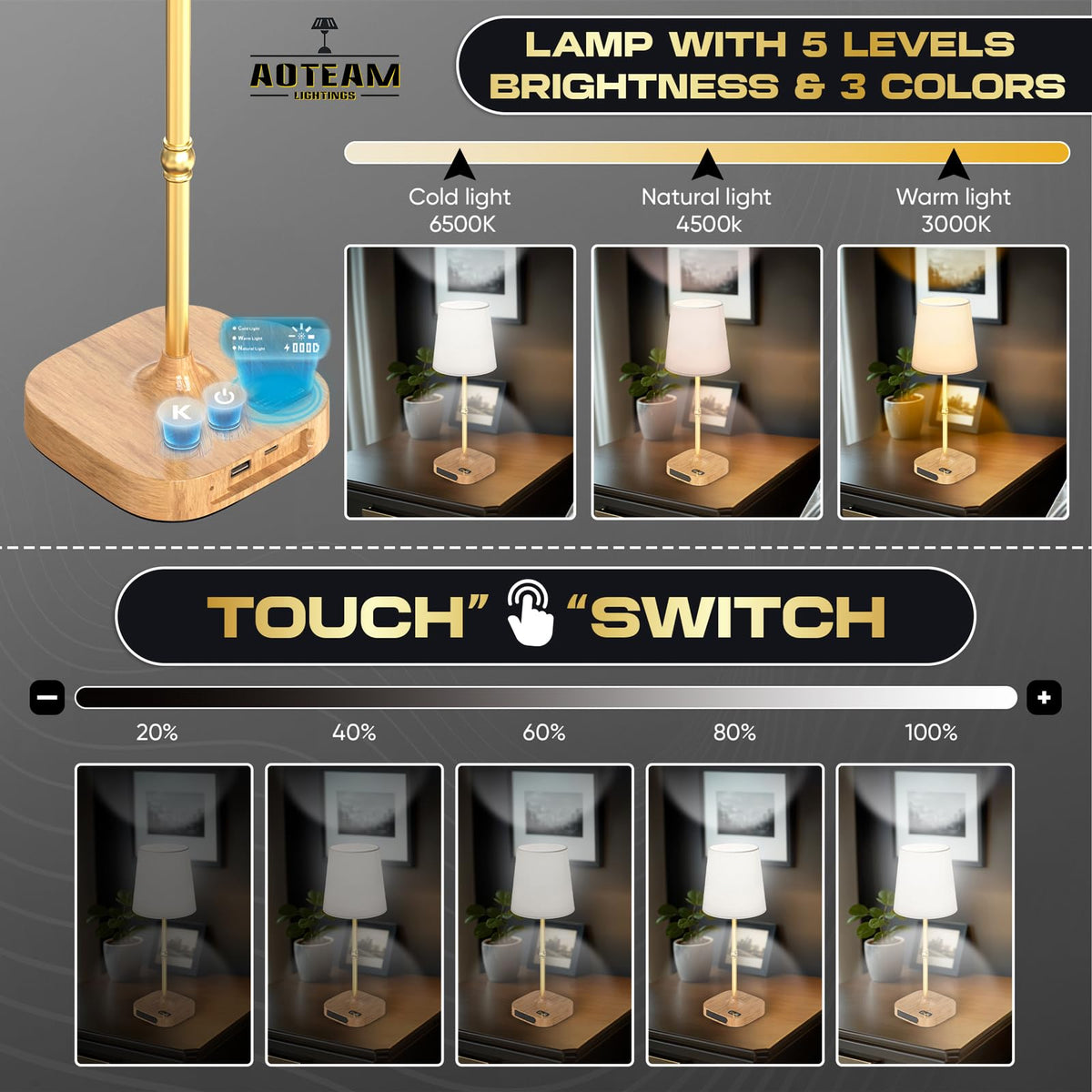 Bedside Table Lamp For Bedroom Living Room 3 Stepless Dimming Touch Lamp For Nightstand 5 Brightness Cordless Table Lamp Recharg