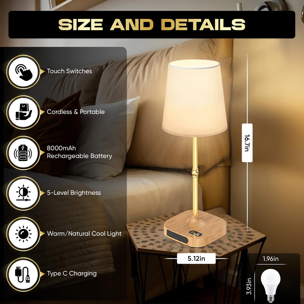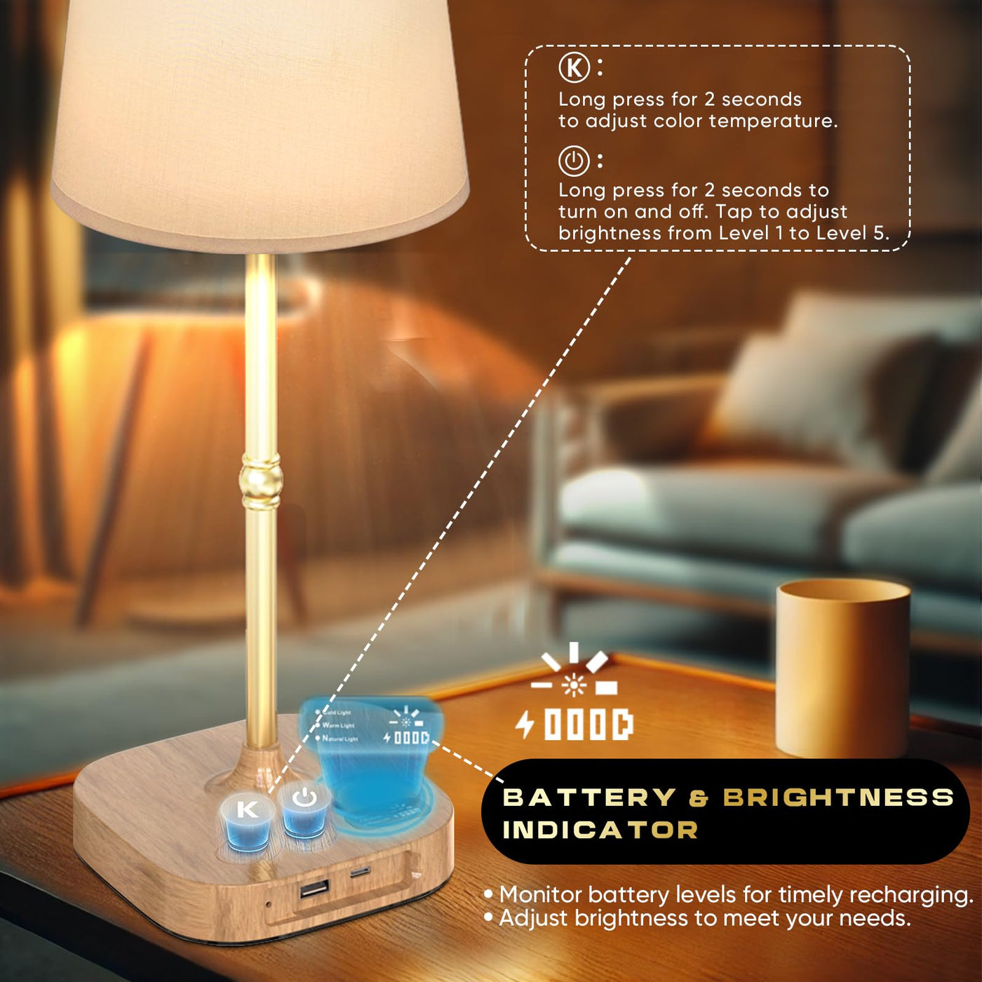 Upgraded Led Display: The 2025 Rechargeable Table Lamp Features An Advanced Led Display That Clearly Shows The Battery Level, Brightness Settings, And Chosen Color Temperature. With Three Adjustable Light Colors-3000K, 4500K, And 6500K-And Five Brightness Levels, It Allows For Easy, Precise Control Of Your Ideal Lighting.