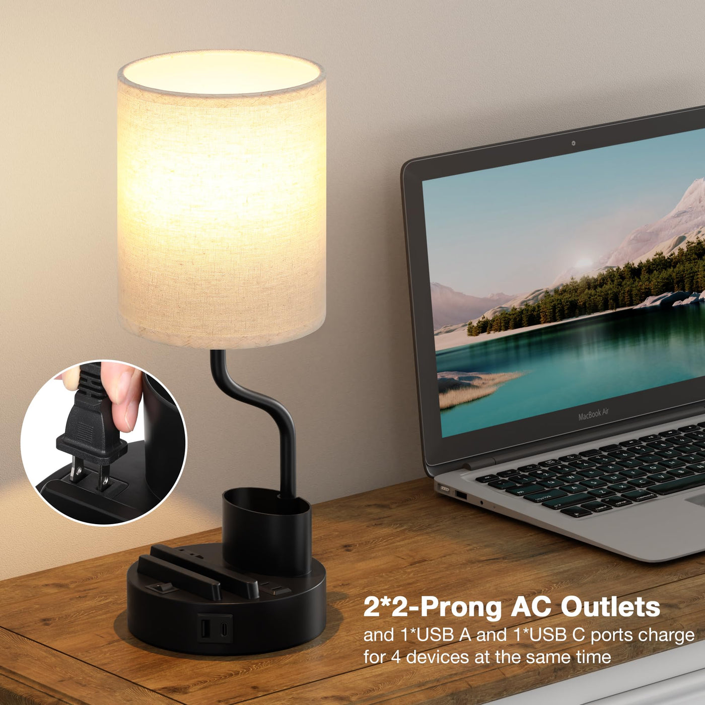 Q: What are the charging options available with the bedside table lamps?A: The bedside table lamps come equipped with 2 AC outlets and 2 USB charging ports, including a USB-C port, allowing you to charge multiple devices simultaneously.