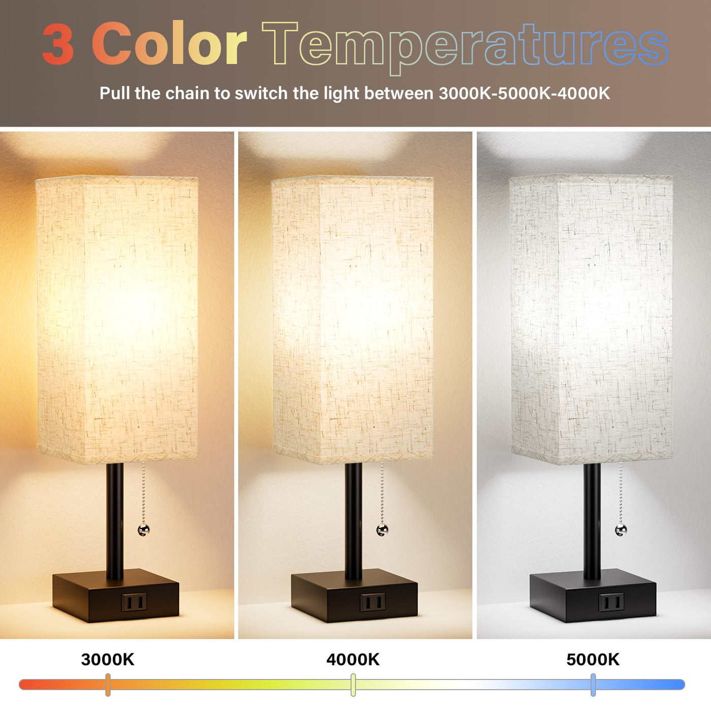Q: What are the color temperature options for the bedside table lamps?A: The bedside table lamps offer three color temperature options: Warm White (3000K) for a cozy atmosphere, Nature White (4000K) for a balanced light, and Daylight White (5000K) for bright, clear lighting ideal for work or study.