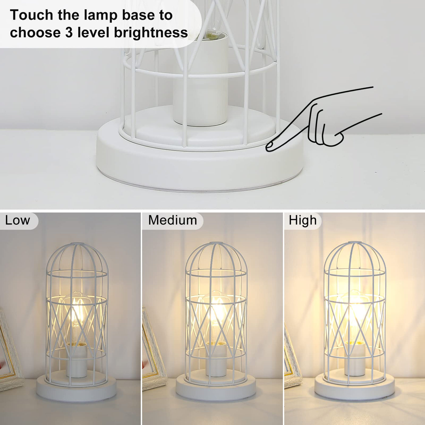 This Small Table Lamp Features An White Cage Shade, It Will Add A Touch Of Modern And Elegant Character Wherever It Is Placed. 3 Way Dimmable Touch Function Enables You To Choose The Desired Brightness According To Your Need.