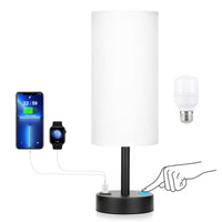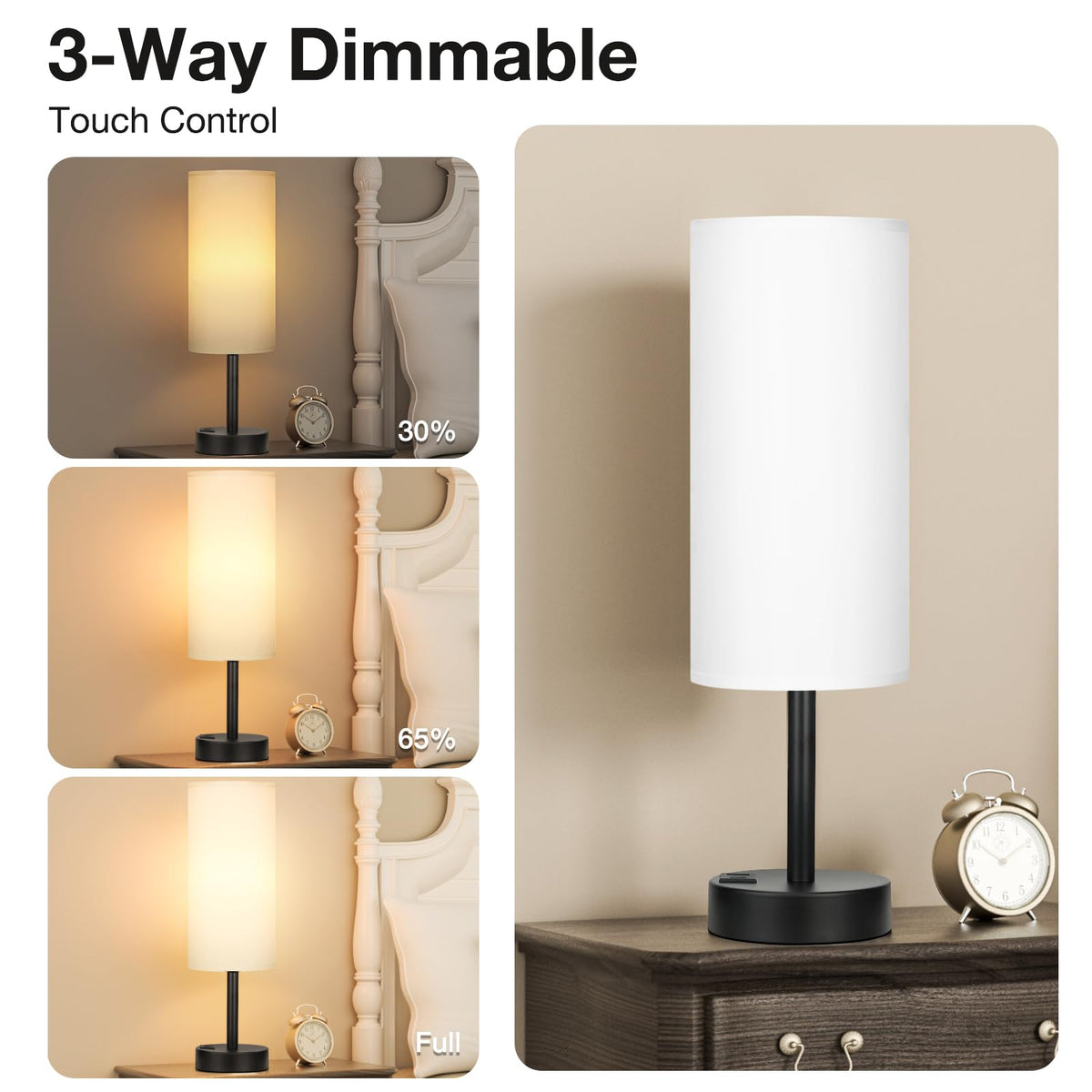 Bedside Touch Table Lamps For Bedroom Nightstand With Usb-C Usb-A Charging Ports White, 3 Way Dimmable Small Lamp Fabric Shade B