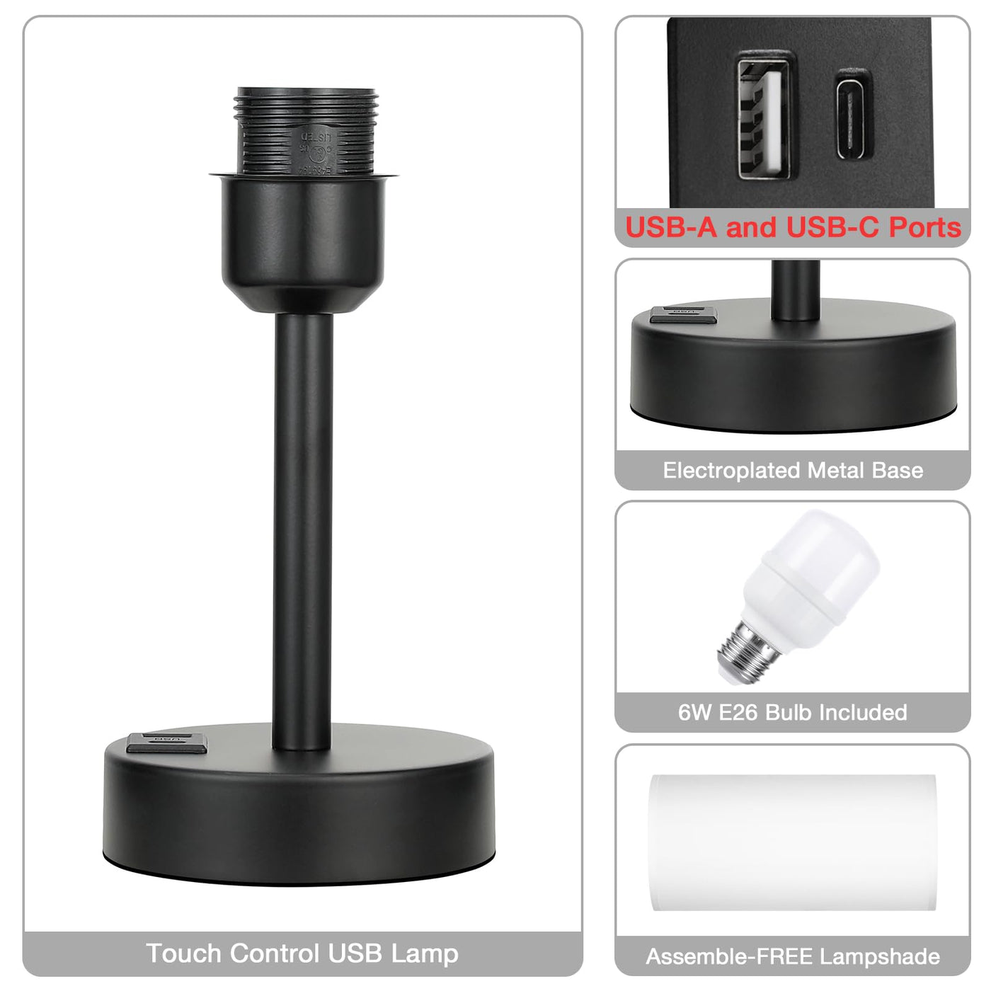 Q: What are the charging options available with this bedside lamp?A: The bedside touch table lamp comes equipped with both USB-A and USB-C charging ports, allowing you to charge your devices quickly and conveniently, even when the lamp is turned off.