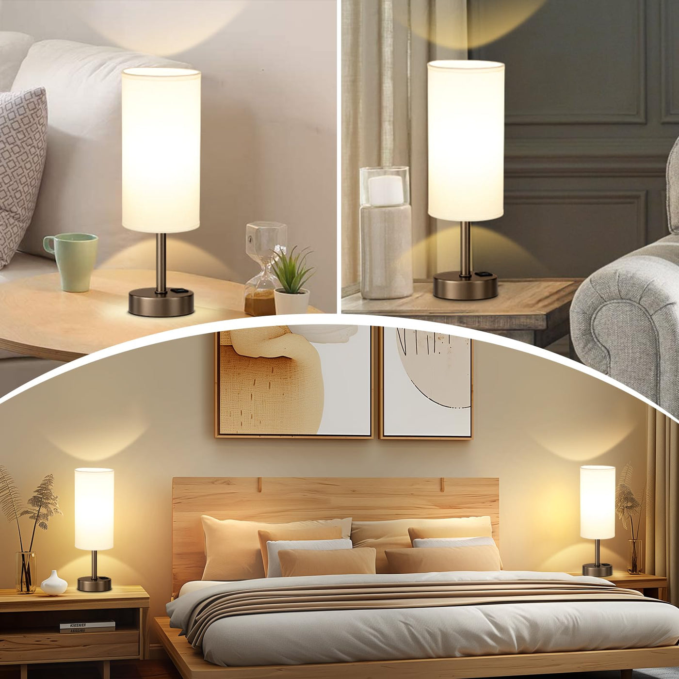 Bedside Touch Table Lamps For Bedroom Nightstand With Usb-C Usb-A Charging Ports, White & Brown 3 Way Dimmable Small Desk Lamp F