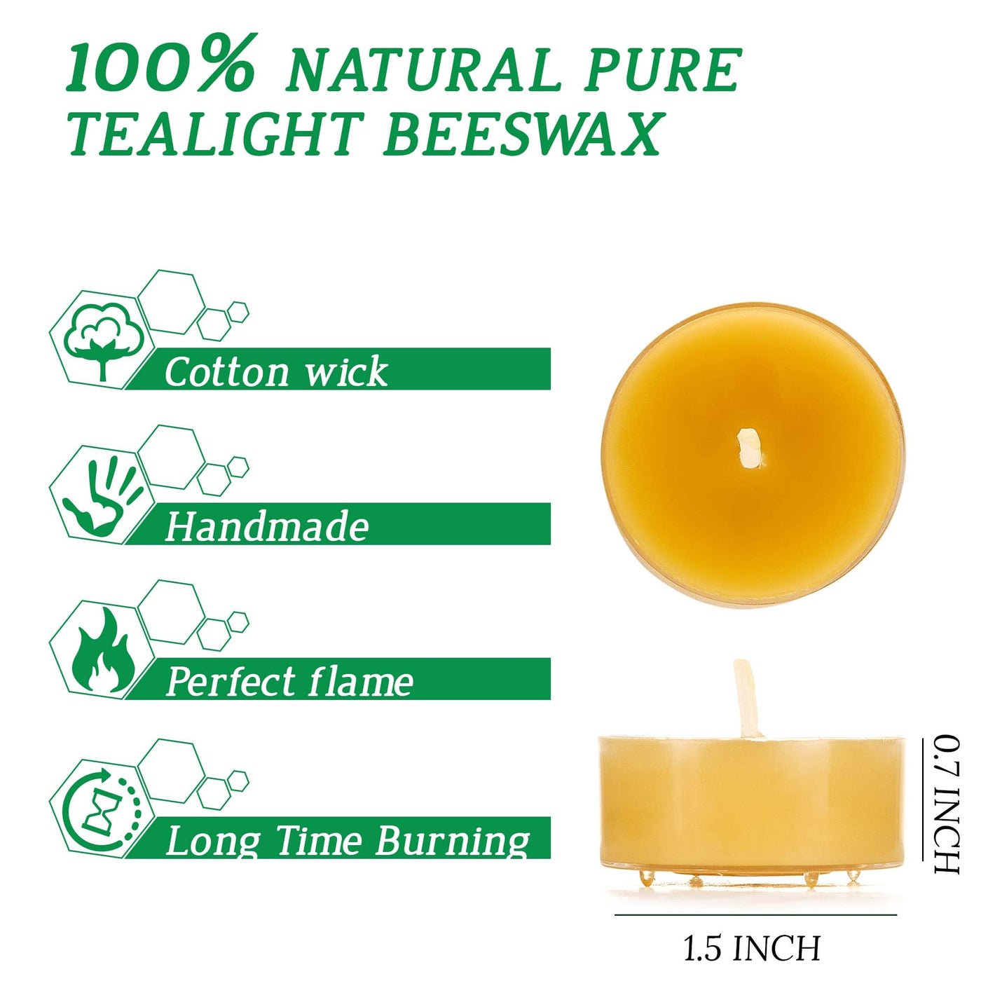 Beeswax Tealight Candles, Tea Lights Candles 12 Pack 4 Hours Of Each, Natural Beeswax Tealights For Home Decor & Ambiance, Long-Lasting & Eco-Friendly