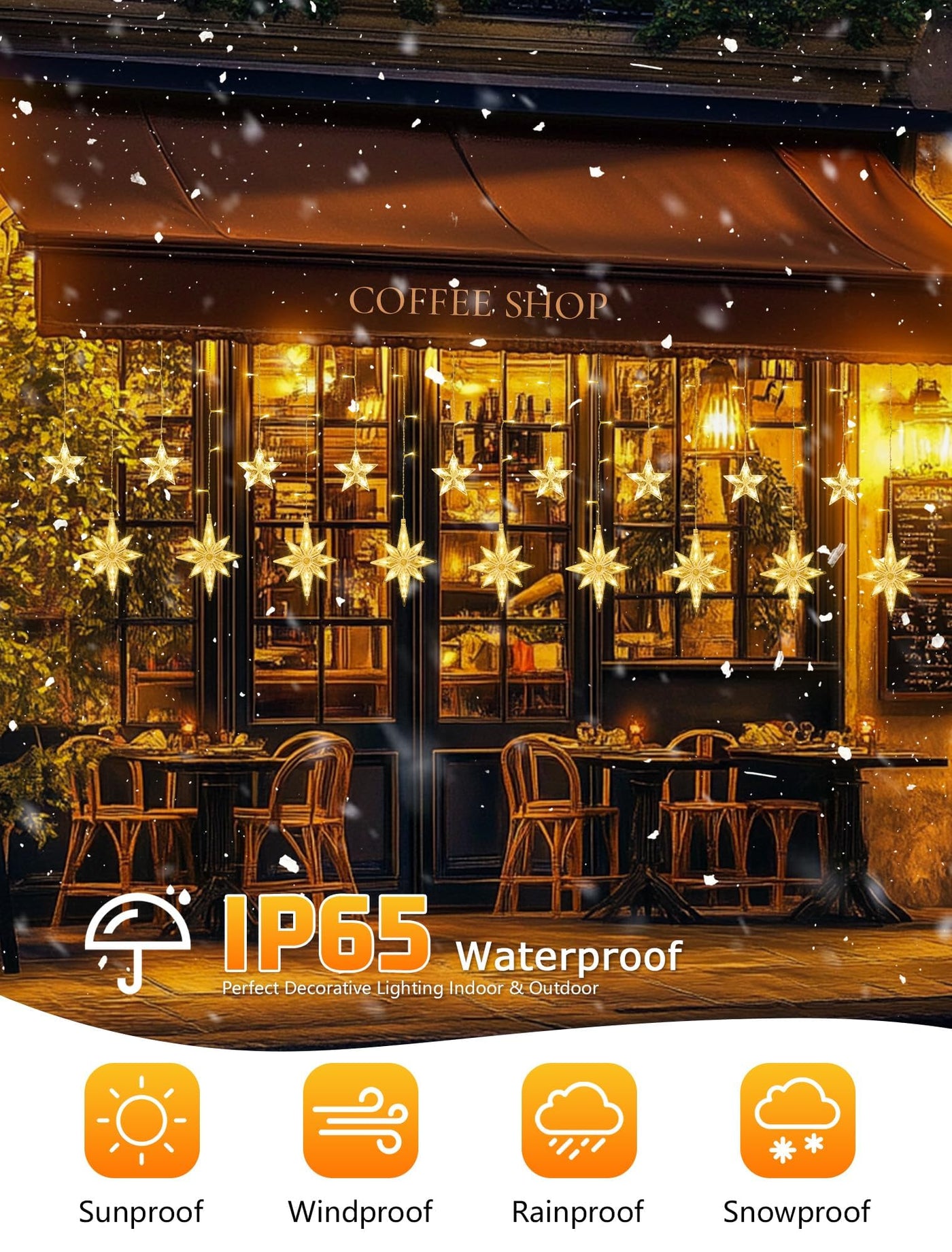 Q: What materials are used in the construction of these icicle lights?A: The BEEWIN 126 LED Star Icicle Lights are made from durable plastic, ensuring longevity and resilience for both indoor and outdoor decorations.