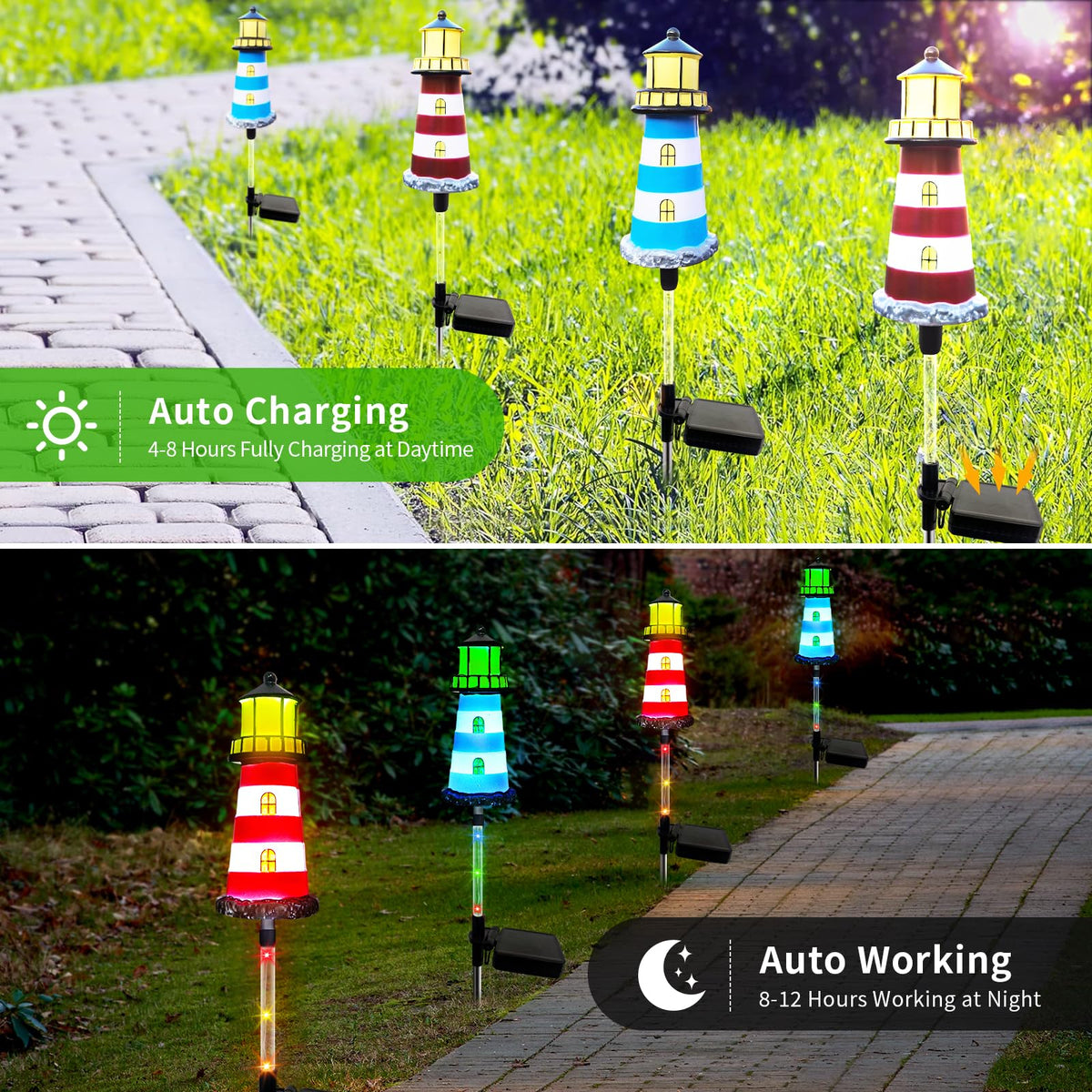 Beidoulu Lighthouse Outdoor Solar Light,4Packs Outdoor Waterproof, Solar Trail Lights Decor Your Garden, Flower Beds, Patio Ligh