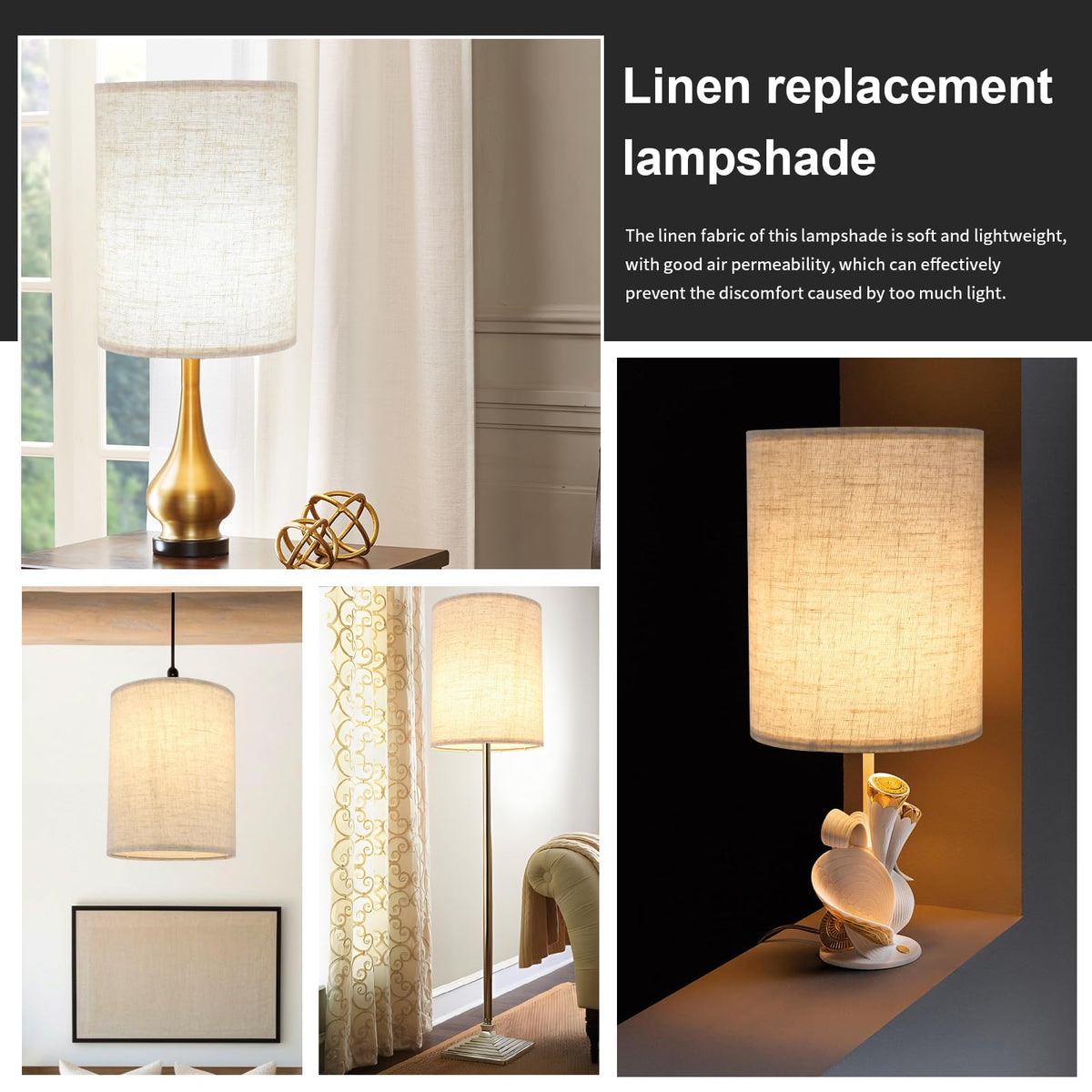 Beige Linen Tall Drum Lampshade, 10'' Top X 10'' Bottom X 13'' High Lamp Shade, Lamp Shade Replacement For Table And Floor Lamps