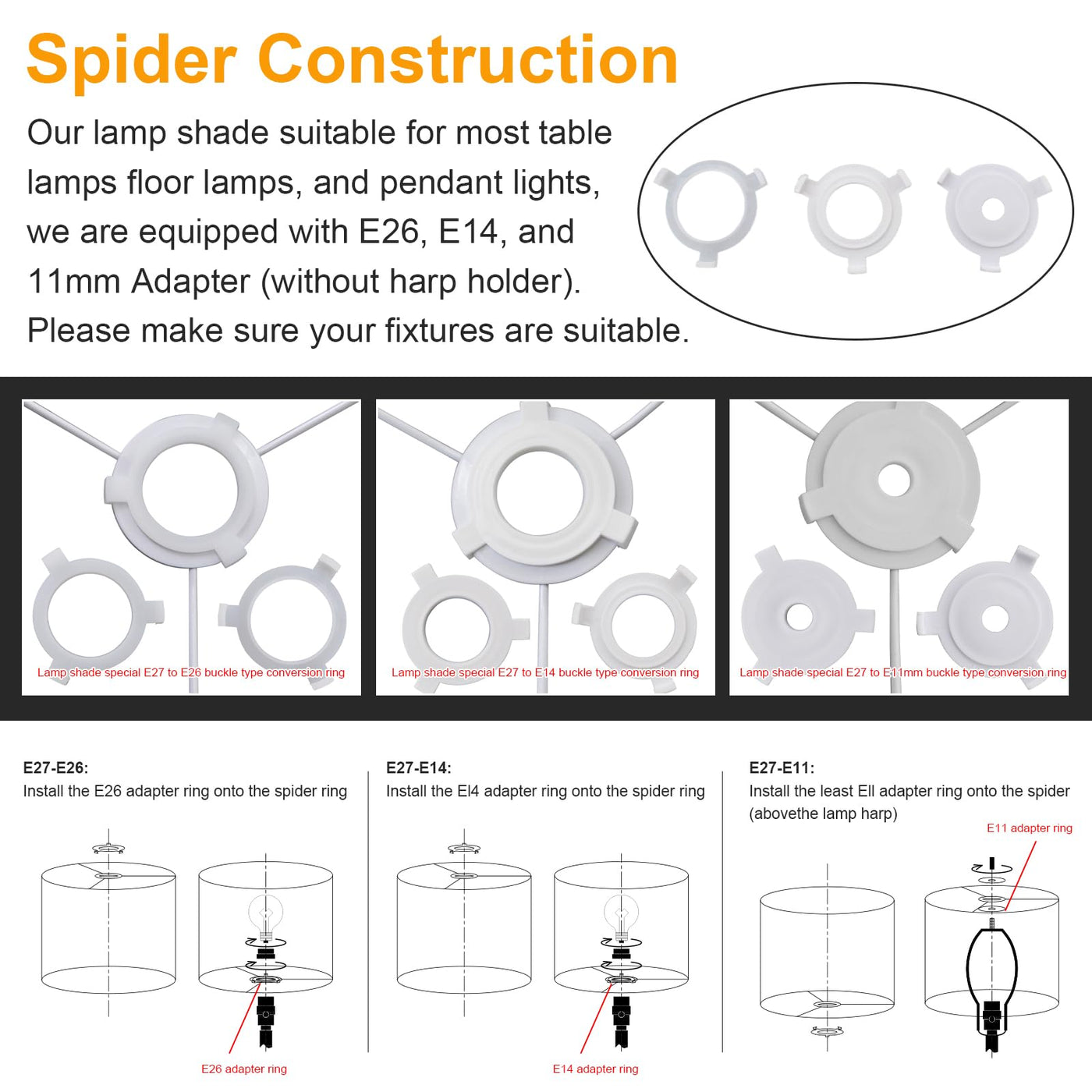 Q: What type of lamps is this shade compatible with?A: This versatile lampshade fits most table lamps, floor lamps, and wall lamps that use a lamp harp. Ensure the lampshade and lamp holder sizes are compatible before purchasing.