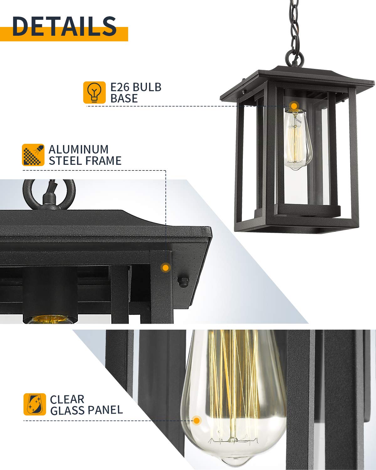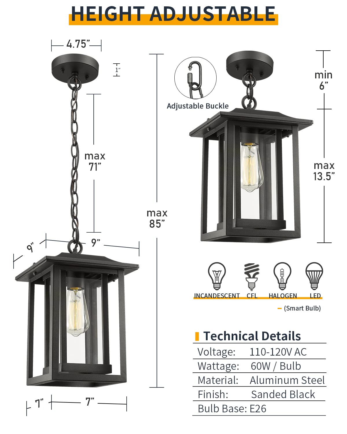 HEIGHT ADJUSTABLE & WEATHER RESISTANT: The adjustable chain allows customization from 6 to 118 inches, making it suitable for various outdoor spaces. Designed to withstand the elements, this pendant light is ideal for porches, patios, and entrances.