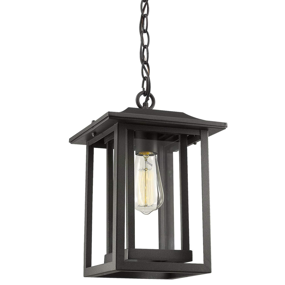 Beionxii Large Outdoor Pendant Light - Black Aluminum Hanging Lantern With Clear Glass 13.5" X 9"