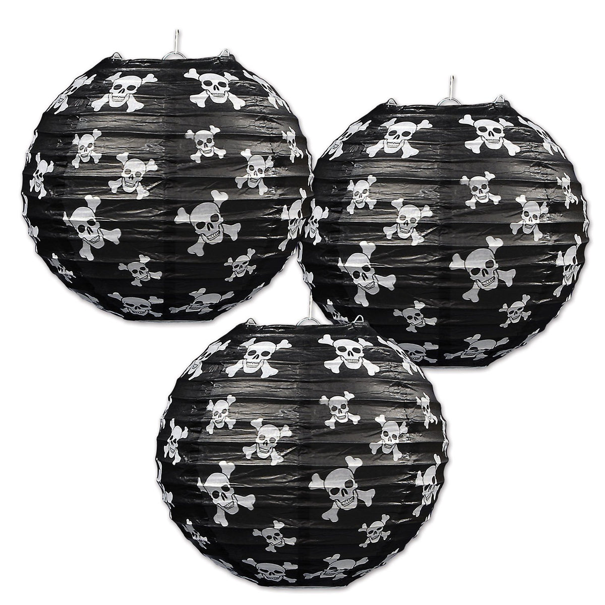 *** Pirate Paper Lanterns ***These 3 Paper Lanterns are perfect for an upcoming Pirate Birthday Party. Each Paper Lantern measures 9.5 inches in diameter. They are made of black paper printed with white skulls and crossbones. Metal inserts are included with hooks to hang the lanterns. Easy assembly is required. Make sure to get other Pirate Party Decorations to coordinate.***Party Planning Made Fun ***From New Year’s Eve Parties, Halloween and Fall Festivities, Bachelorette Parties, Birthday Bashes, Graduation Get-Togethers, Baby Showers, Pool Parties, and more, our Novelty Items and Party Supplies are sure to add a pop of color and extra spice to any occasion.*** Celebrating life's events - one party at a time ***The Beistle line includes over 8,000 items - products for nearly any event, celebration, or theme imaginable. Since 1900 our mission has remained the same: Create products using the finest materials and to the highest standards. Our customers, products, and employees make us who we are. We are The Beistle Company!