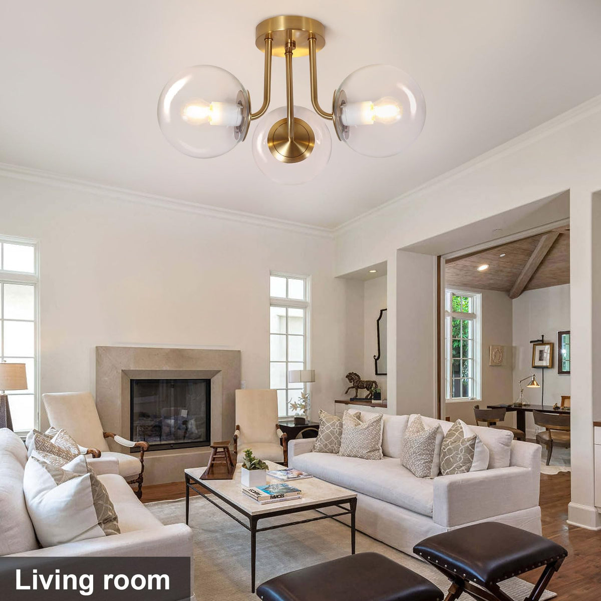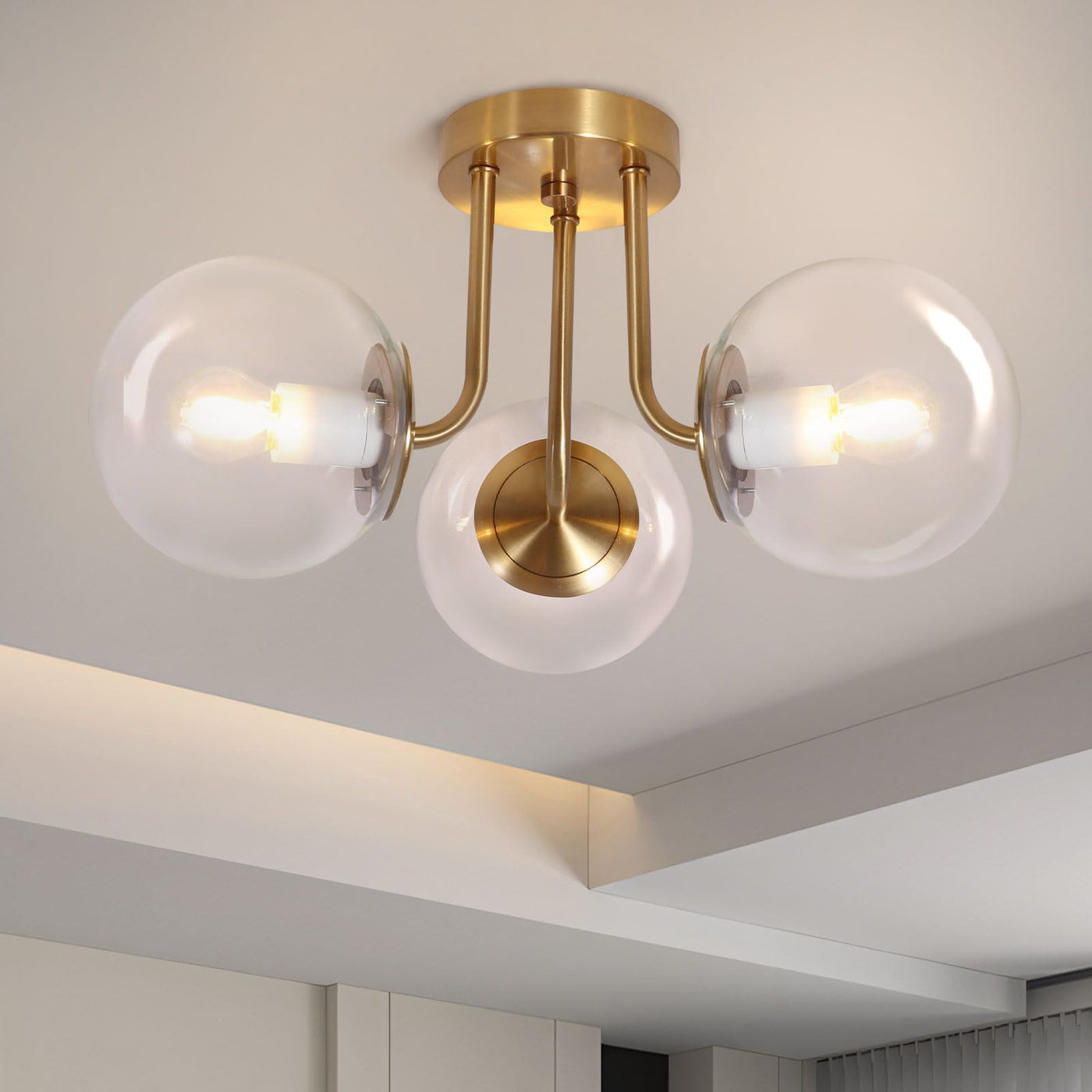 Bektas 3-Lights Semi Flush Mount Ceiling Light Fixture Brushed Gold Light Fixture Bend Modeling With Transparent Glass Shade For