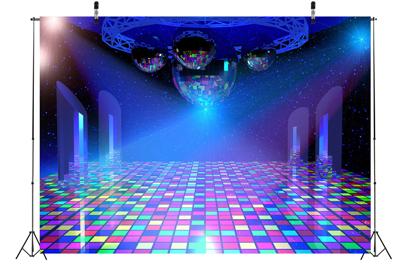 BELECO 20x10ft Fabric Disco Party Backdrop Vintage 70s 80s 90s Disco Ball Stage Backdrop Night Club Neon Music Birthday Backdrop