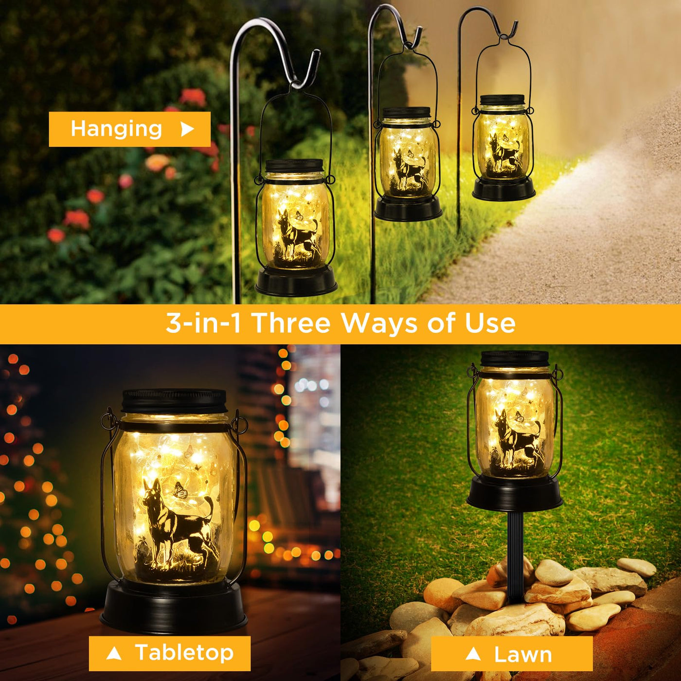 Belgian Malinois Dog Gifts For Women/Men Belgian Malinois Solar Lanterns Birthday Dog Lovers Lantern Pet Loss Dog Memorial Lights Solar Garden Decoration For Yard, Patio,Backyard,Porch Torches Light