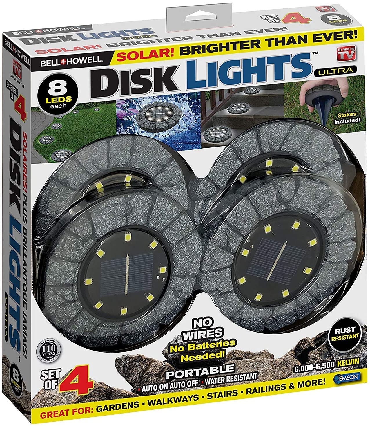 Bell+Howell Disk Lights Stone - Heavy Duty Outdoor Solar Pathway Lights - 8 Led, Auto On/Off, Water Resistant, With Included Stakes, For Garden, Yard, Patio And Lawn -As Seen On Tv