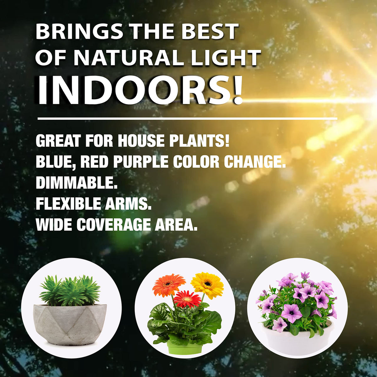 Three light modes: Blue light, Red light, and Full Spectrum UV Light. Blue light helps promote dense foliage growth, while red light encourages flowering. Maintain a self-sustaining little garden inside your home and see your plants grow from sprout to bloom. | Since lighting needs vary by plant species or cultivars, we designed the Growburst to have an adjustable, automatic timer (3, 6 or 9 hours) as well as 8 brightness settings, to cover most of your indoor plants lighting requirements. | Three ways to mount the Growburst. Comes with Table-top stand for portability; clip-on product on edges if you’re out of space; or mount item directly on preferred location using screws (hardware included in every Growburst purchase). | Bring the best of natural light indoors. Grow organic, pesticide-free herbs like basil, or sage for your culinary needs, or if you just want your smaller ornamental plants maintain their lush foliage without having to take them out time and time again. | Specifications: Comes with 3 light panels. Each panel with 15” flexible gooseneck. Built-in automatic shut off timer (3, 6 or 9 hours), On/Off button. Plug in item using USB cord (included). No batteries needed.