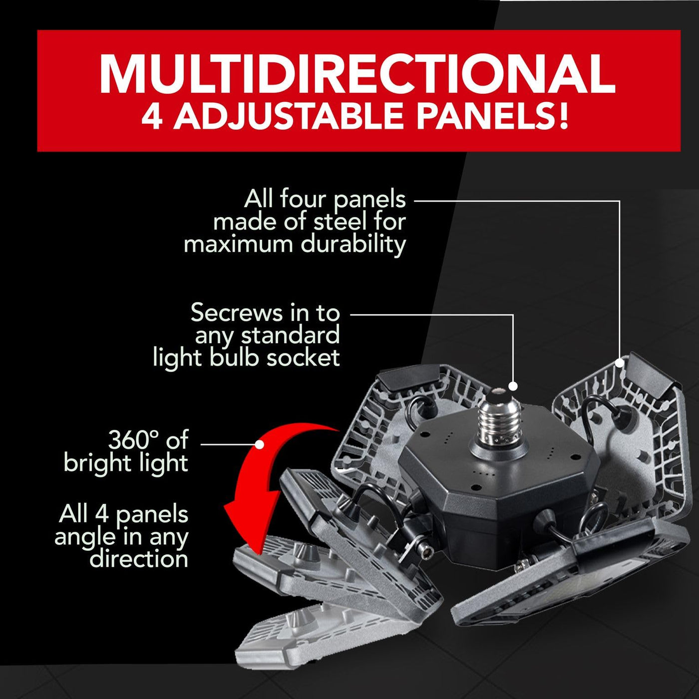 - **Versatile Hinged Panels**: Featuring four deformable hinged panels that can be adjusted up to 90 degrees, the Quadburst allows you to direct light exactly where it's needed, ensuring optimal illumination in every corner of the room.