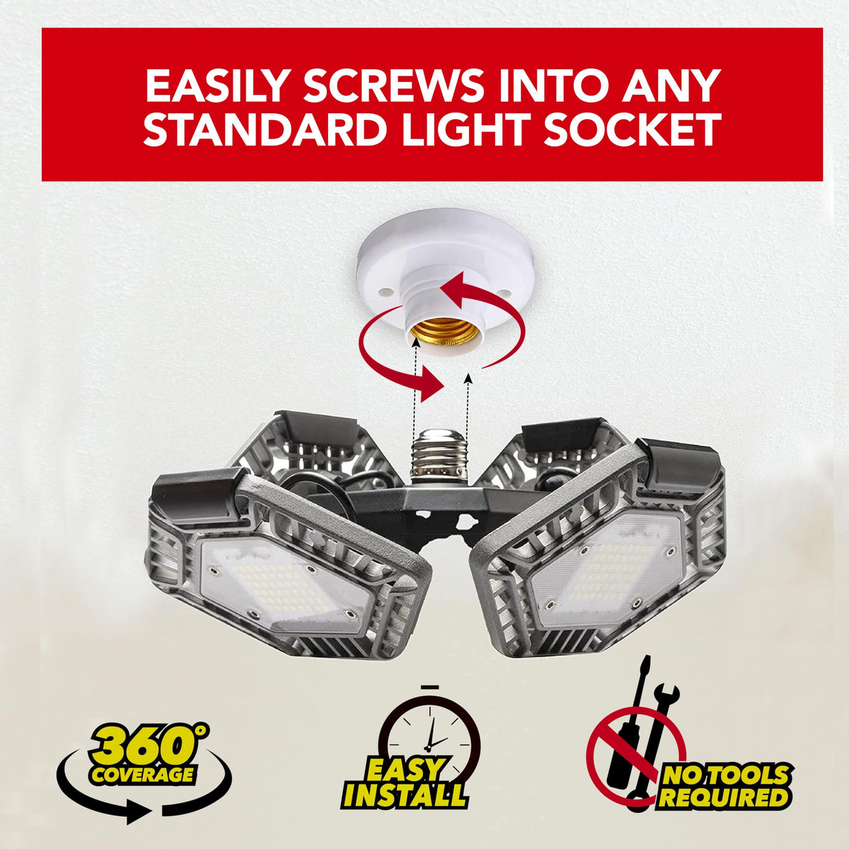 - **Effortless Installation**: Say goodbye to complicated setups. Quadburst simply replaces your existing light bulb. Just remove the old bulb, screw in the Quadburst, and use your wall switch to enjoy instant bright light—no electrician needed!