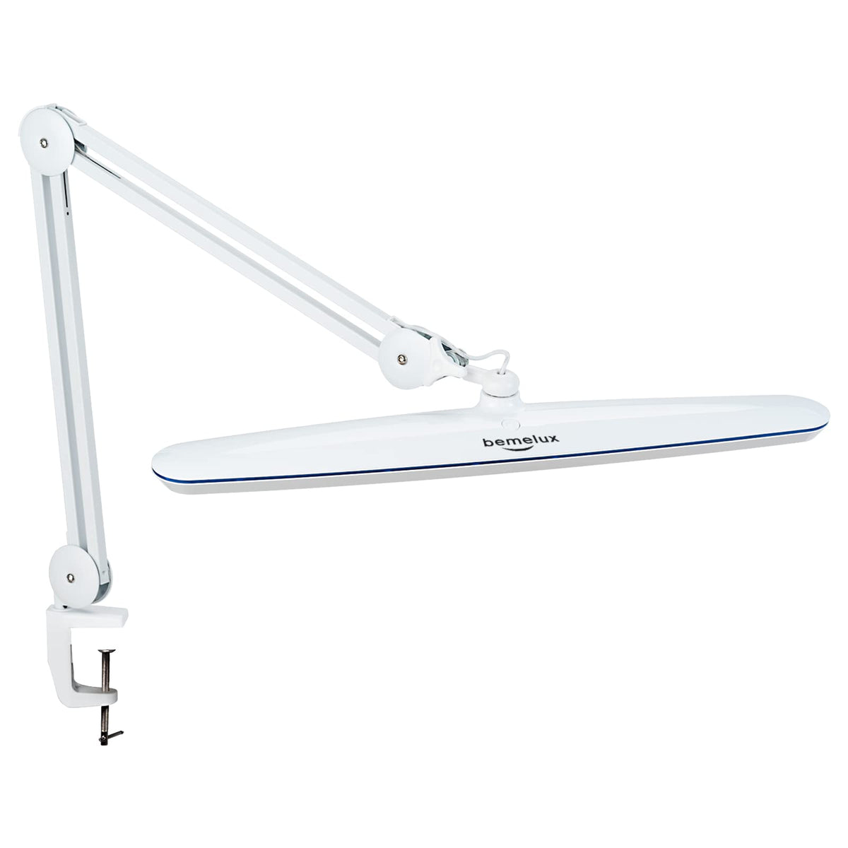 Clip-on Multi-Joint Modern Large Energy-Efficient Eye-Caring 4 Brightness Levels Long Swing Metal Arm Study Lamp Excellent Industrial Strength Construction The arm will hold the lens in place without sagging. The wires and parts are well hidden in the arm, not messy, easier to clean than spring arm. Strong Metal ClampThe max clamping distance is 2.76in, which can be used for tables of various thicknesses. Folds up the arms to maximize your desk space. Eye-care TechnologySimple and stylish Lamp head, emitting soft light without ghost, glare or flicker and providing even lit viewing area&reduces eye strain. Push ButtonThe Bemelux architect desk lamp uses a step-dimming switch with six settings - ON, 100%, 75%, 50%, 25% and OFF. You can press the power button twice to turn the lamp off. The button’s life is more than 50,000 times. Memory FunctionOur Piano lamp has the function of power memory. When it restarts, first time we press the button, the dimming switch is the one before the power failure. Pls note: do not unplug the lamp to automatically retain your dimming setting when you turn it back on. Specifications: Item No.: BLUX9501LED Voltage: AC100-120V Power: 24W Light Source: 117pcs SMD LED Luminous: 2200 lm CCT: Daylight 5600K~6000K Material: PC+ABS+Fe