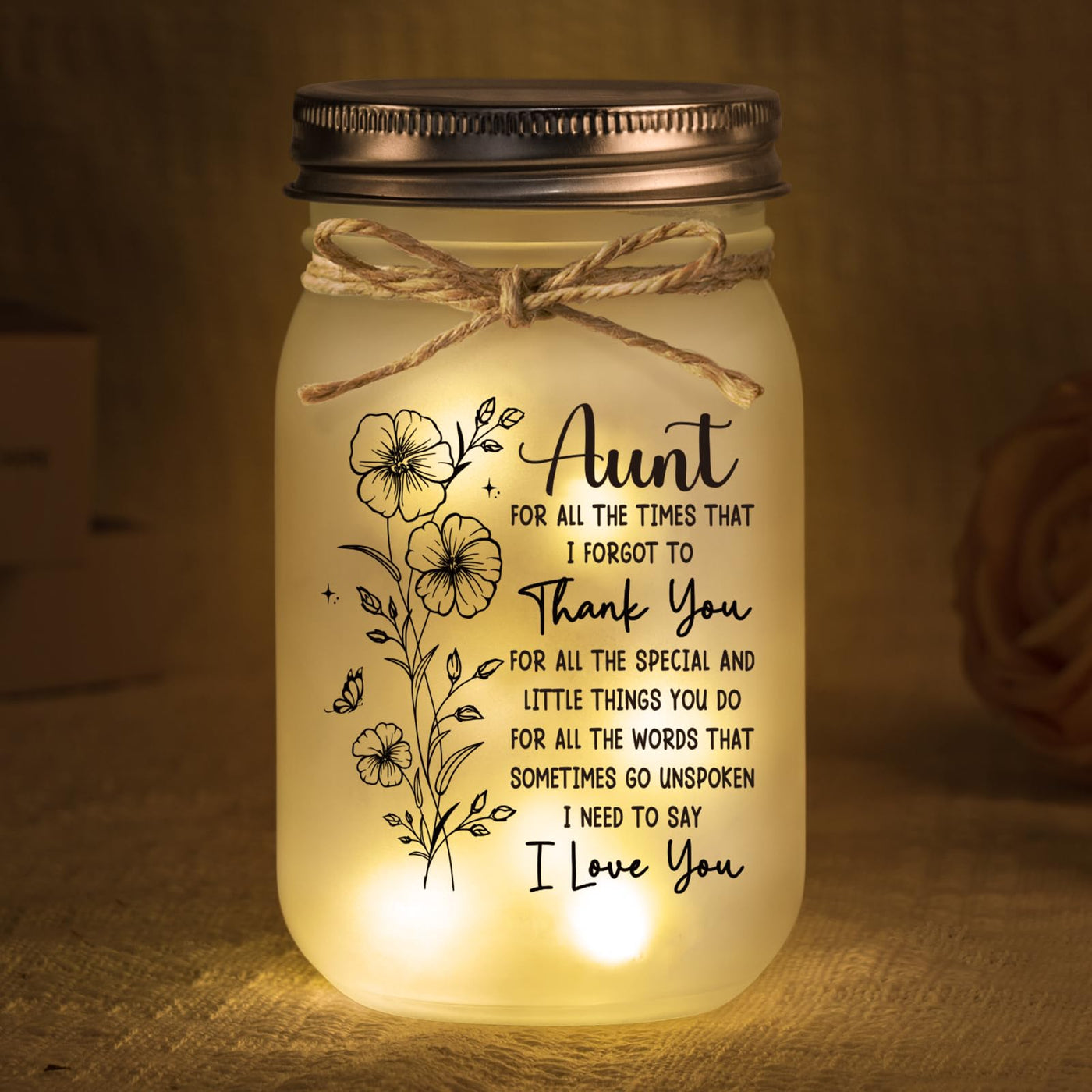Benecharm Christmas Aunt Gifts Aunt Birthday Gifts Decorative Jar Light Night Gift For Aunts Birthday Christmas Mothers Day Aunts Presents From Niece Nephew