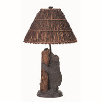 Improve the aesthetics of your living space by the inclusion of this sophisticated table lamp. Crafted from resin in a black finish, it features a bear design body with a honeybee and showcases stylish carved details. It features a shade with real twigs, woven together to keep them in place.