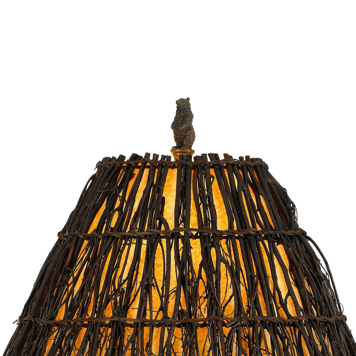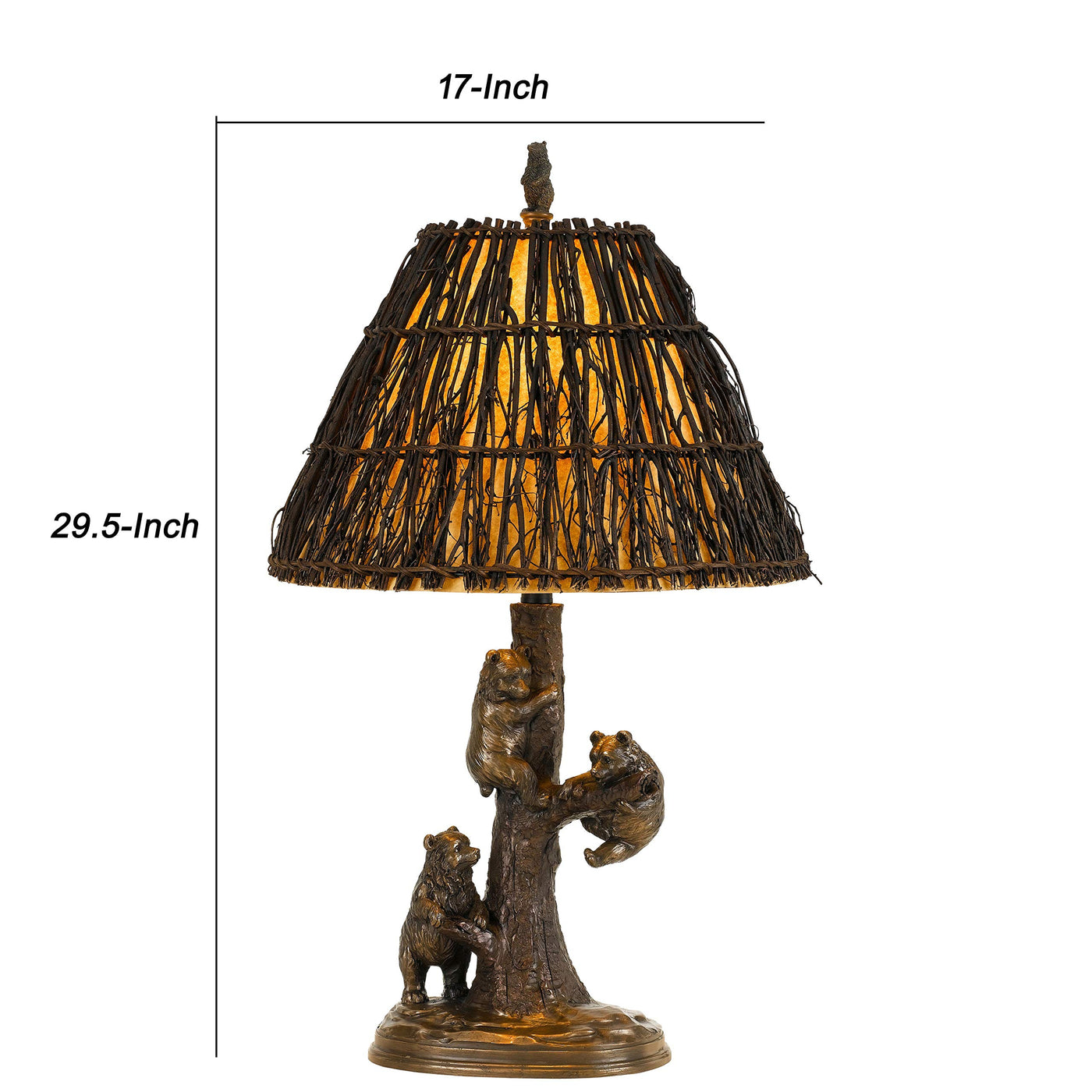 Benjara 150 Watt Resin Body Table Lamp With Bear Design And Twig Shade, Bronze