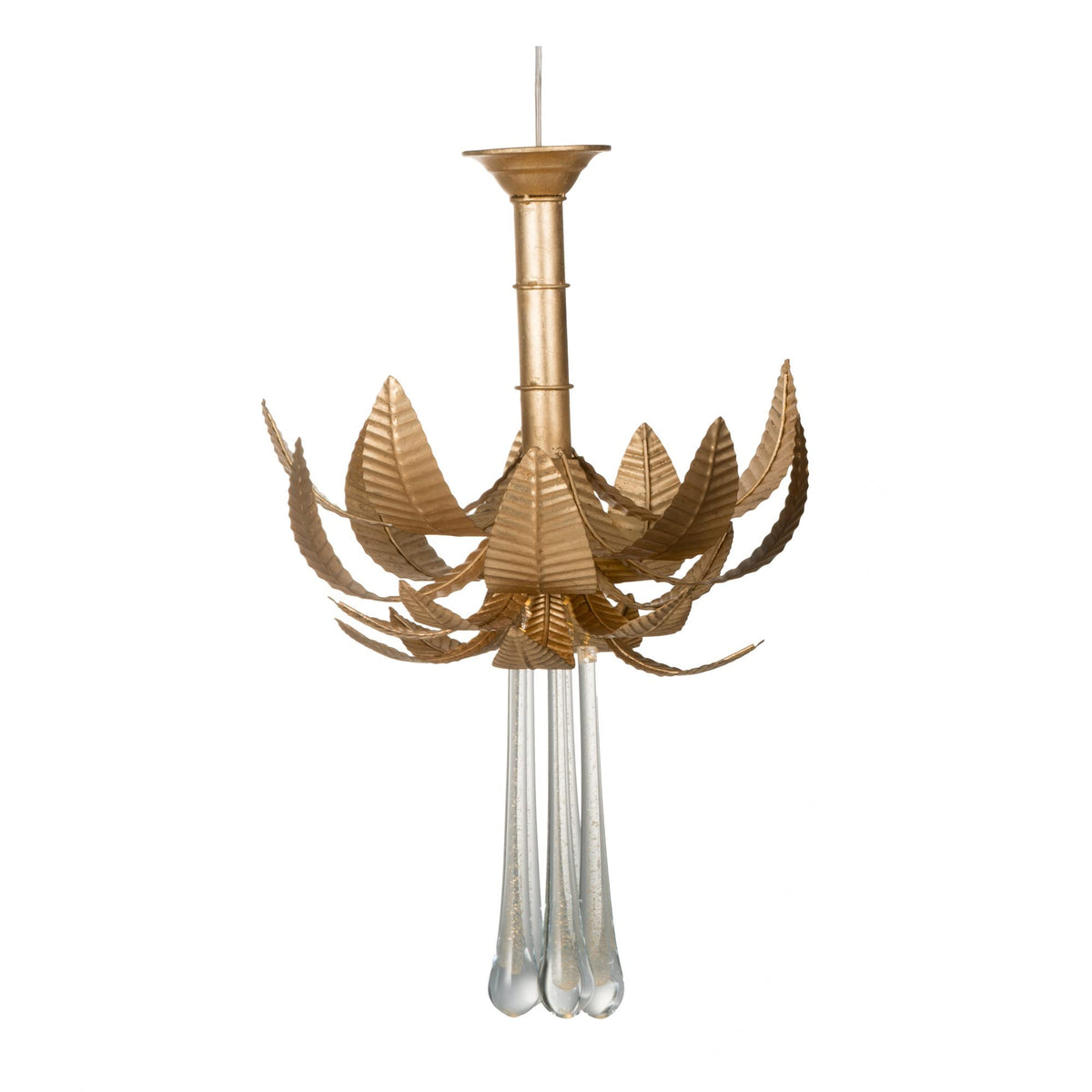 One brilliantly designed chandelier | Durable iron construction | Beautifully textured gold finished metal leaves | Magnificent bell glass crystals | A vintage look for a new aged piece