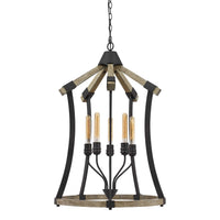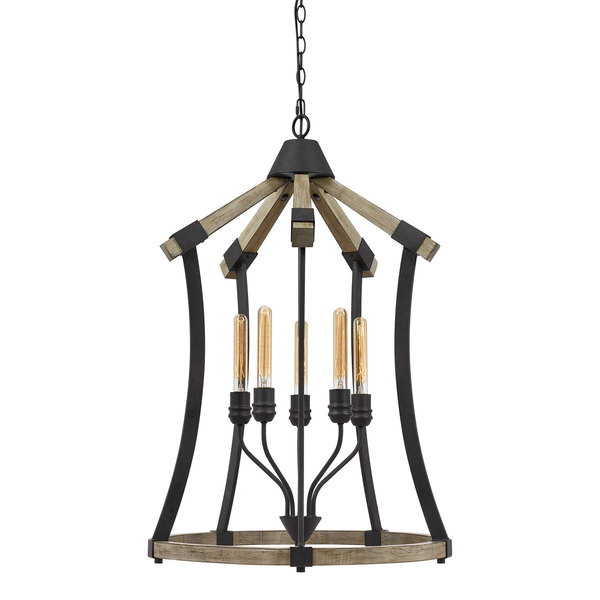 Benjara 5 Bulb Pendant Fixture With Wooden And Metal Frame, Brown And Black