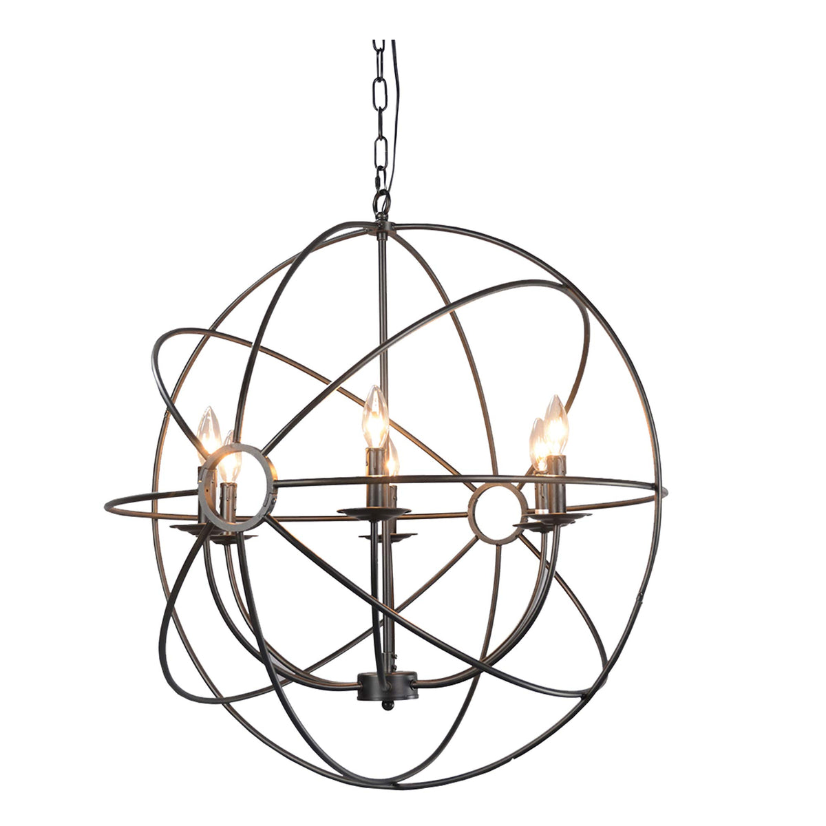 Benjara 6 Light Fixture Orb Shape Metal Frame Chandelier, Black