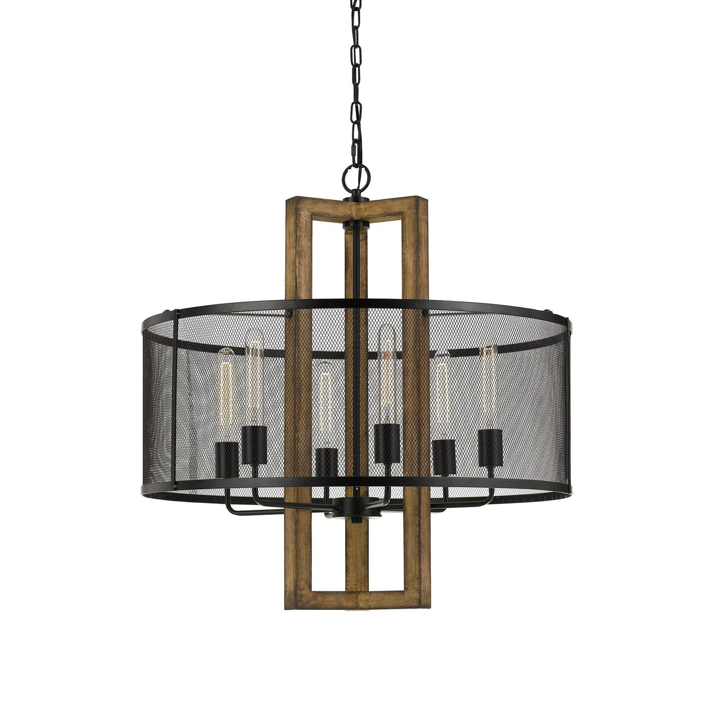 Emblaze your home decor by bringing in this contemporary style Chandelier which comes with 6 light fixtures to ensure quality lighting. Constructed from solid wood frame with metal mesh shade, it is accented with brown and black finish.