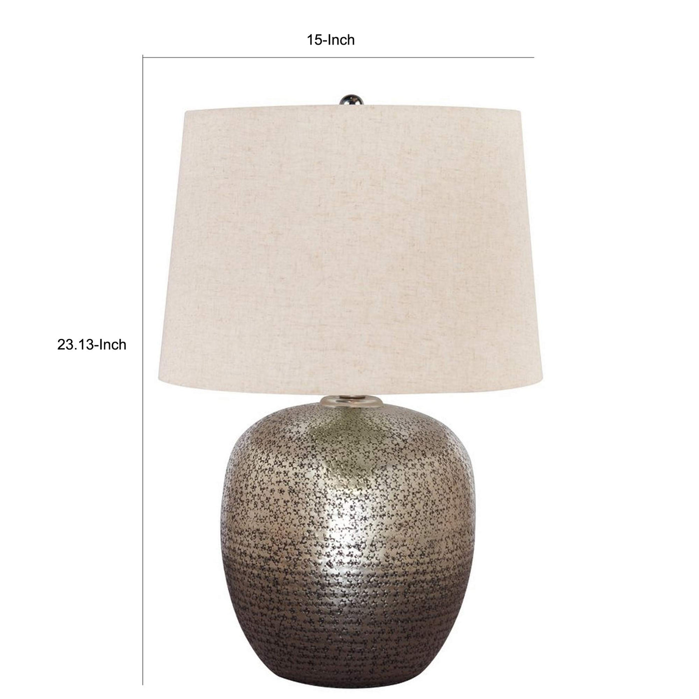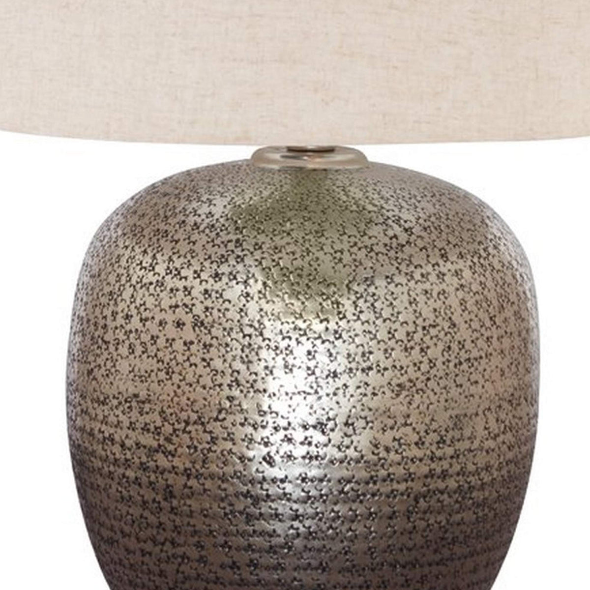 Benjara Bellied Metal Body Table Lamp With Splotched Details, Brass And Cream