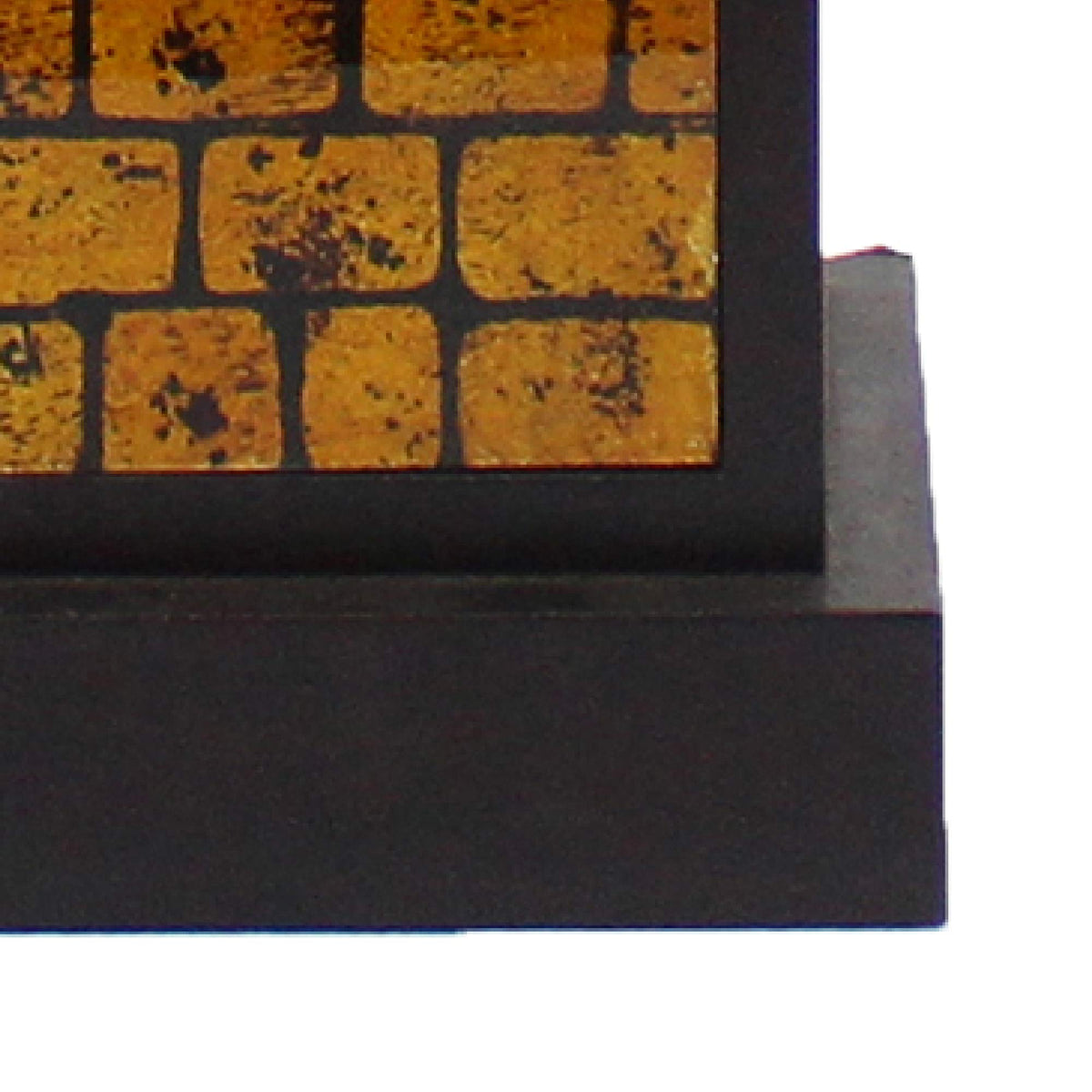 This sturdy metal constructed table lamp featuring contemporary style is here to add a gorgeous look to your bedroom. The rectangular shaped frame has been accented with brick pattern design. Resting atop block base, it has tapered shade which completes the overall look.