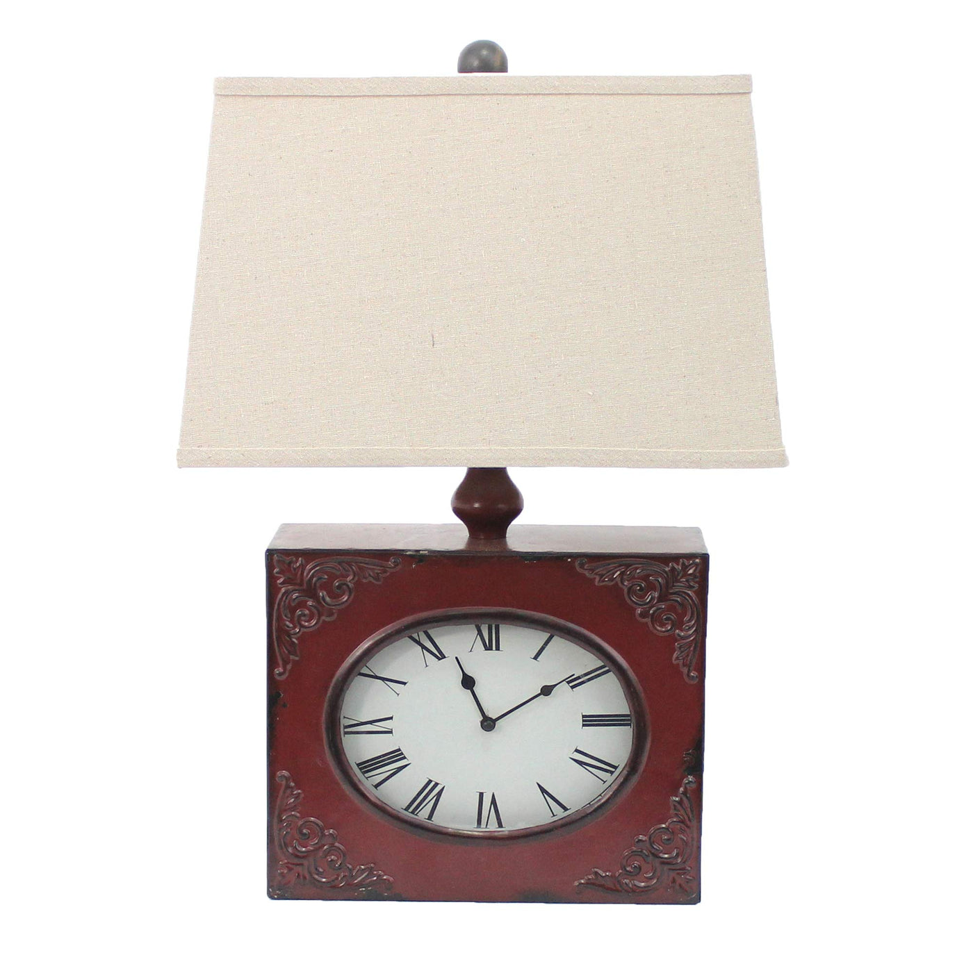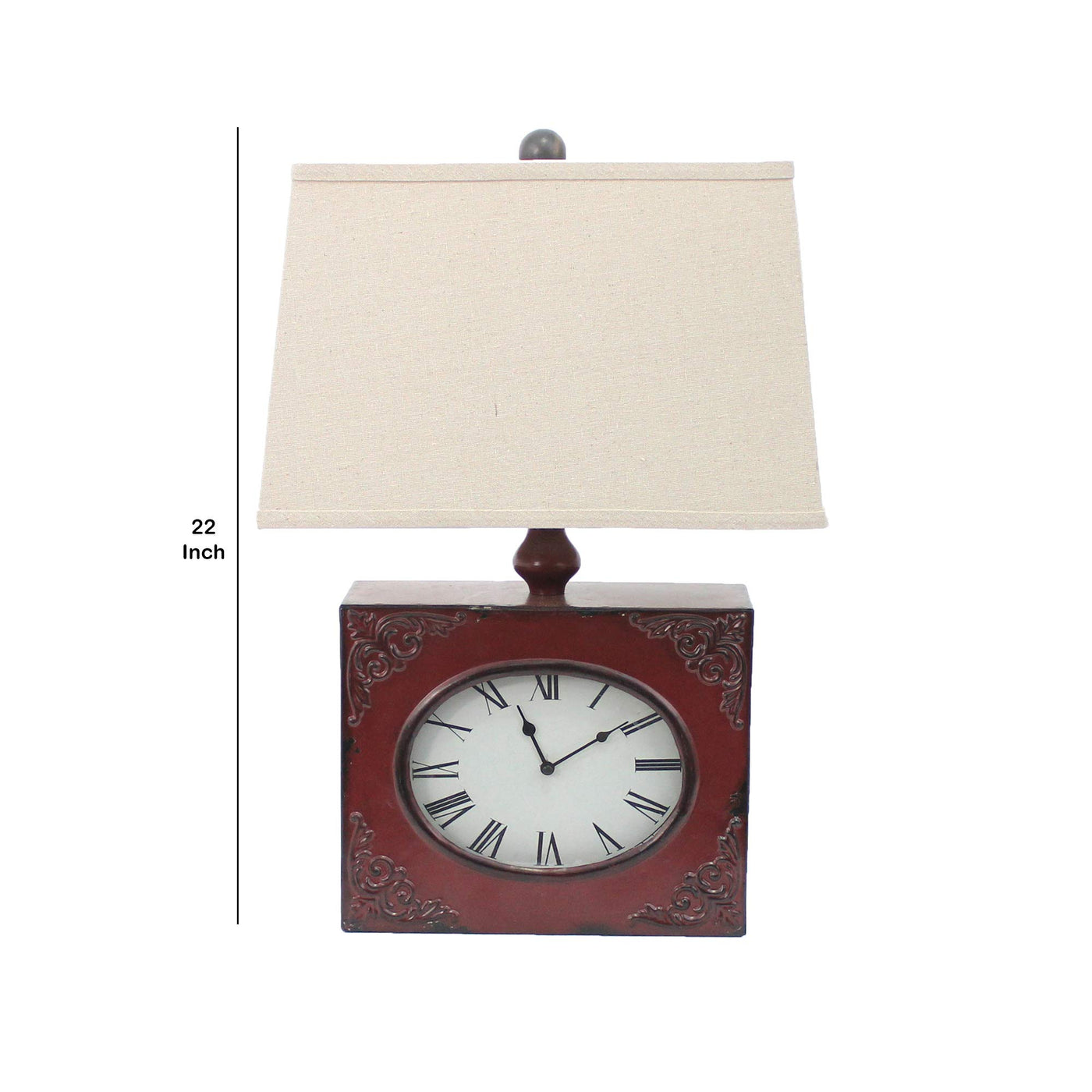 Benjara Bm217249 Clock Design Metal Table Lamp With Tapered Shade Red & Beige - 22 X 7 X 4.75 In.