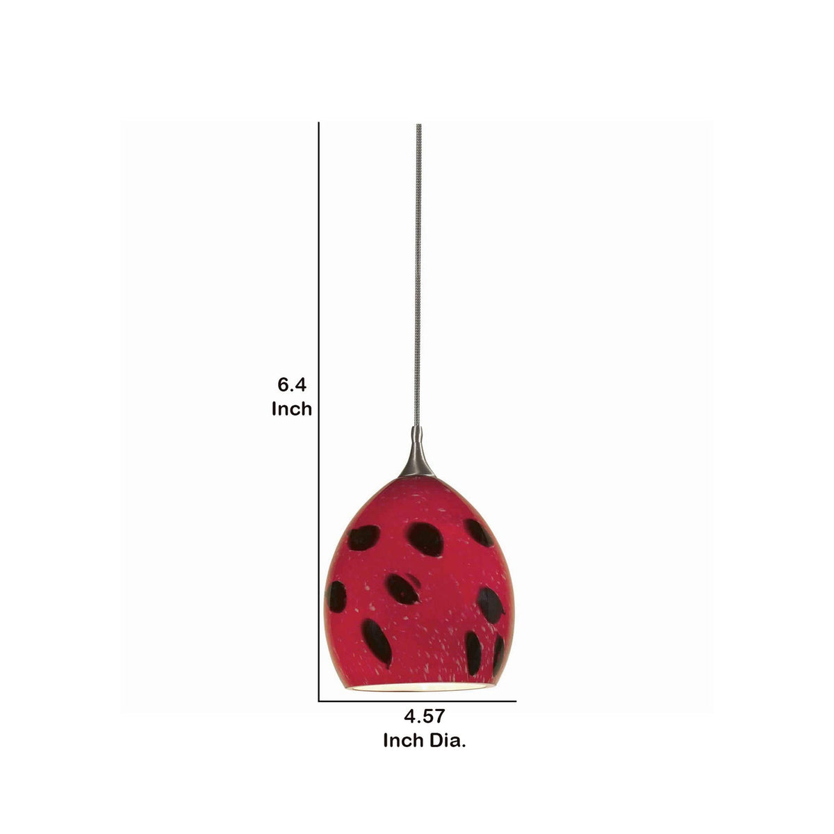 Add layers of light with this stylish Pendant Lighting to your d�cor. It is durably constructed from metal, featuring black dots dome red glass shade with canopy and a smaller opening at the bottom that lets you switch out compatible 35 Watt bulb with an ease. The silver finish hanging 72 inch cord evenly distributes a warm glow throughout your space.