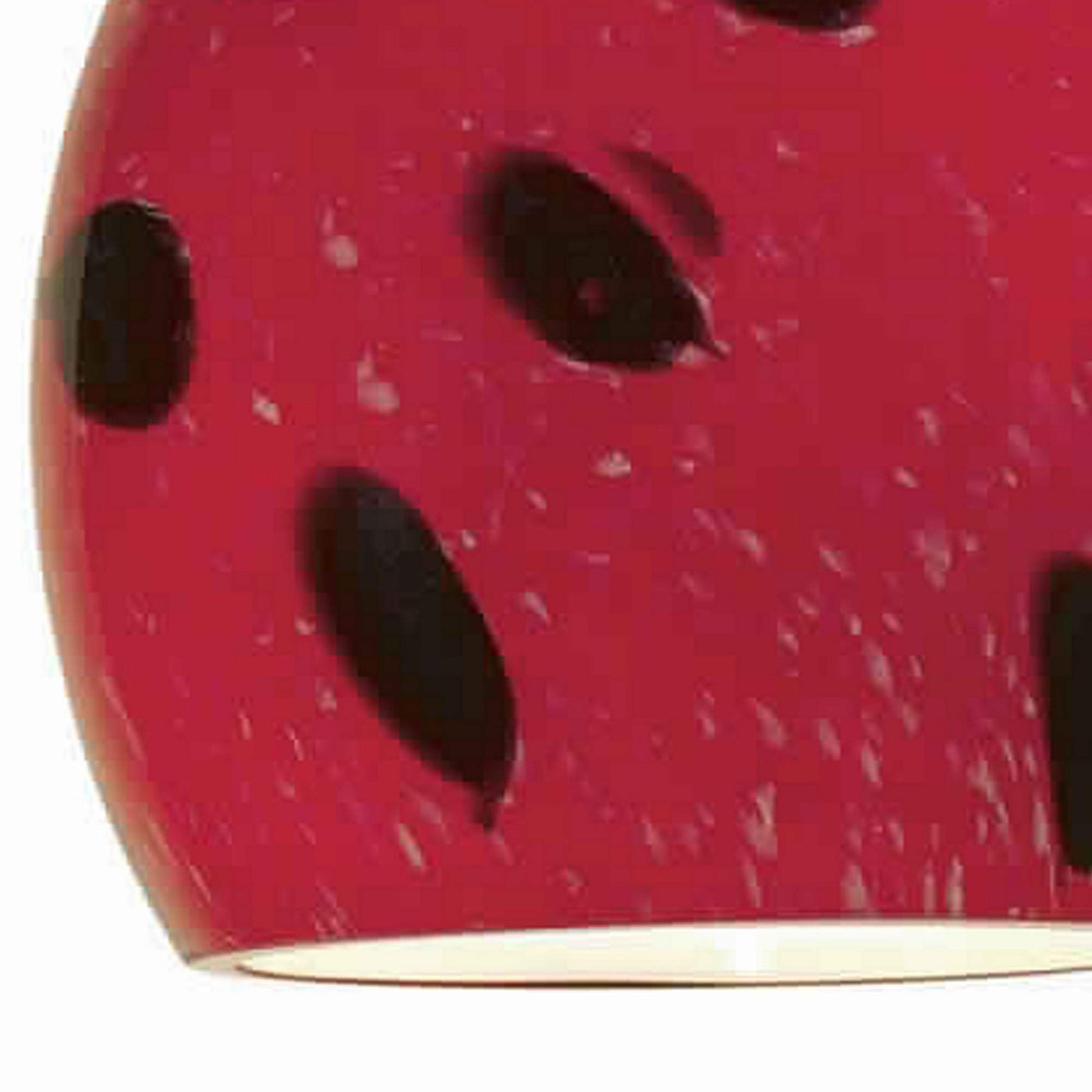 Q: What materials are used in the construction of this pendant light?A: The pendant light is durably constructed from metal and features a dome-shaped red glass shade with black dots, combining both style and durability for long-lasting use.