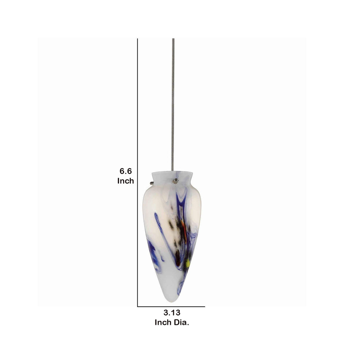 Q: What are the dimensions of the Benjara BM223615 pendant light?A: The Benjara BM223615 pendant light measures 3.13 inches in length and width, with a height of 6.6 inches, making it a compact choice for various spaces.