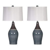 Benjara Bm227189 Pot Bellied Ceramic Table Lamp With Brushed Details Gray & White - Set Of 2