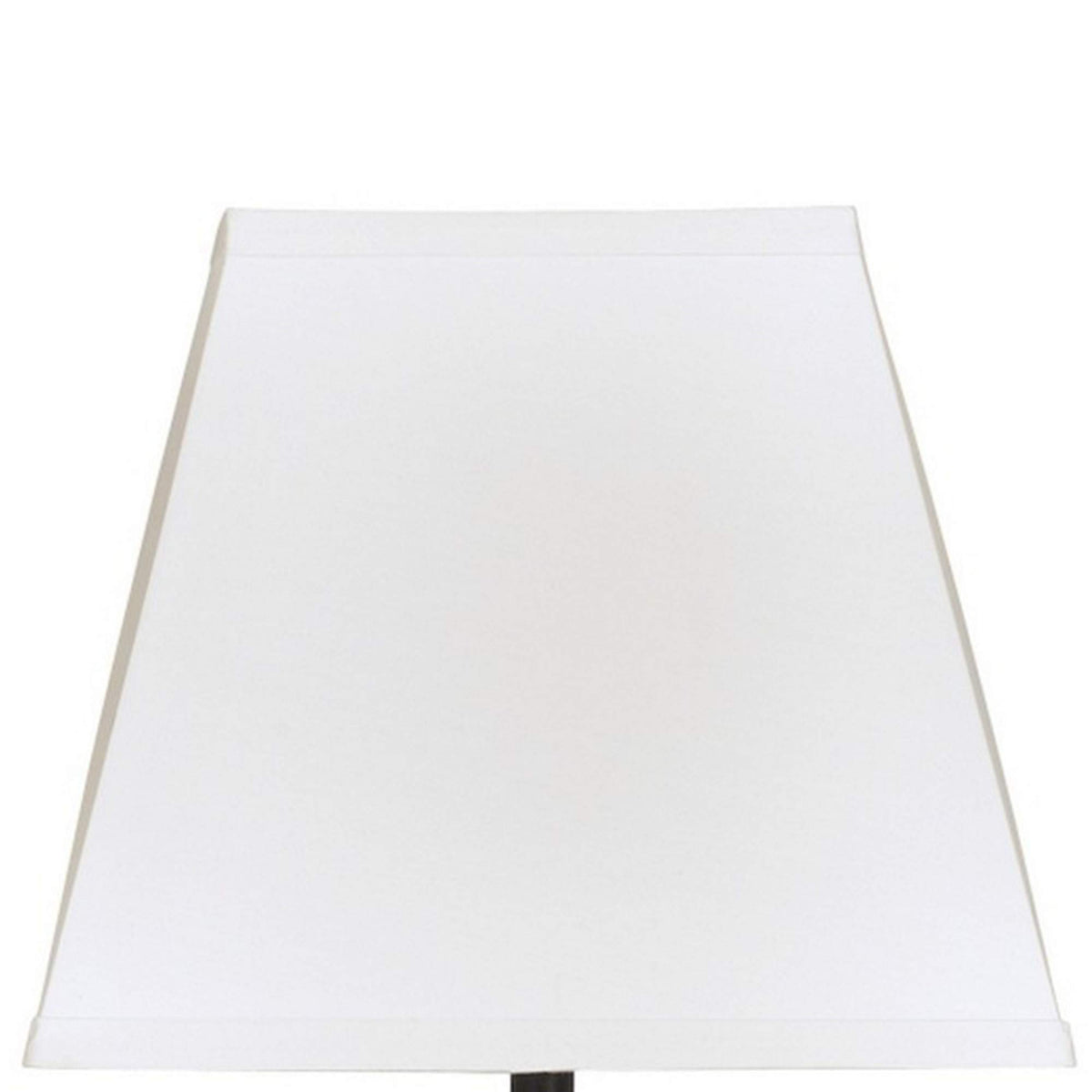 Q: What materials are used in the construction of this table lamp?A: This table lamp is made from high-quality polyresin, ensuring durability, and features a tapered hardback shade that complements its contemporary design.