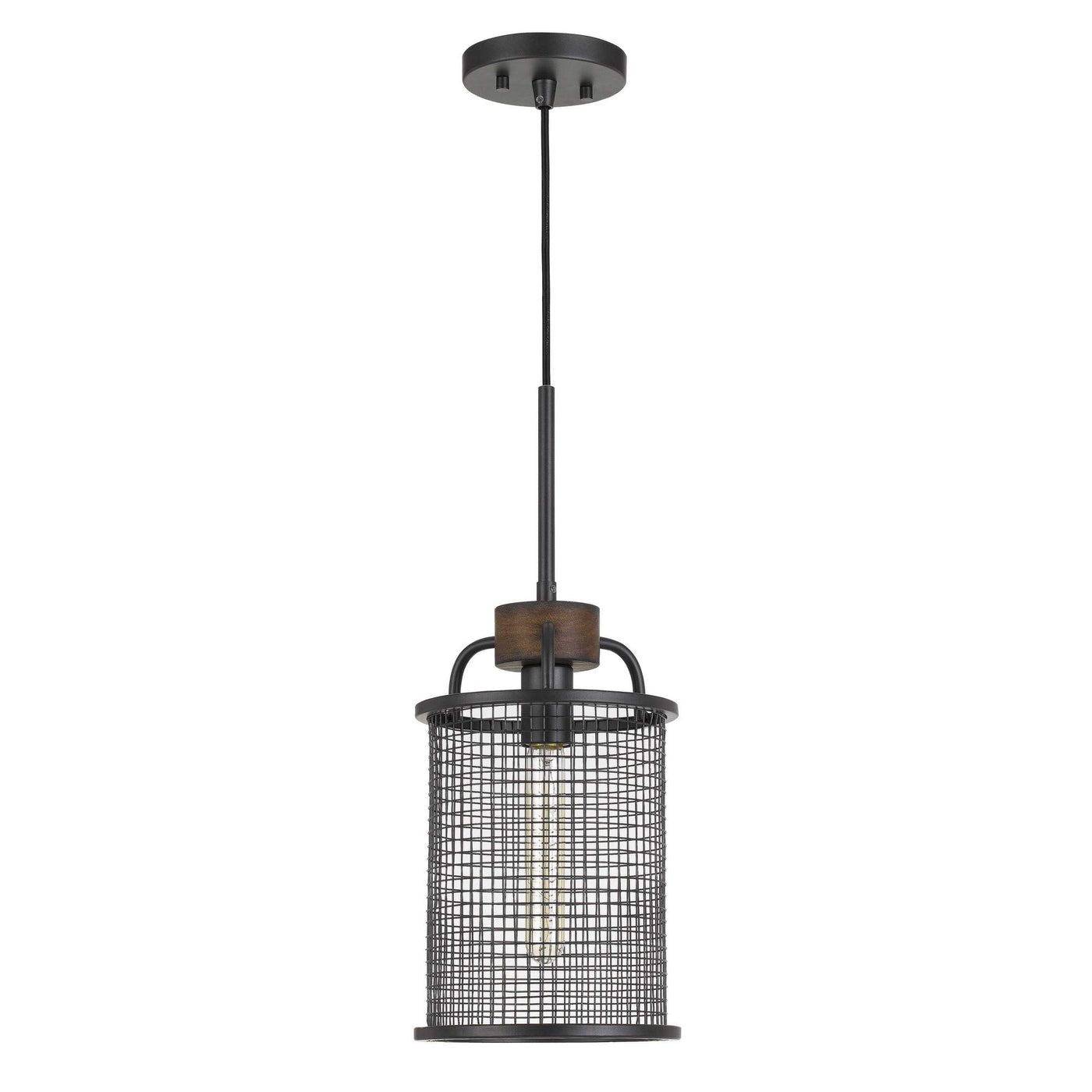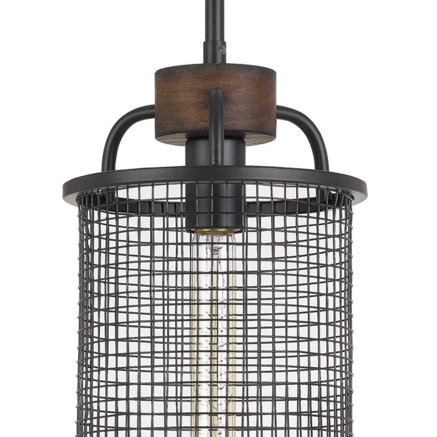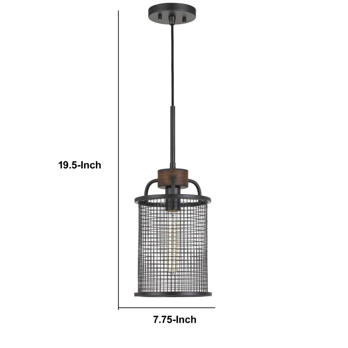 Benjara Bm233266 19.5 X 7.75 X 7.75 In. Cylindrical Grid Design Metal Chandelier With Wooden Accent, Black