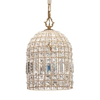 Benjara Light Pendant Chandelier with Dome Metal Frame and Crystal Accents, Gold