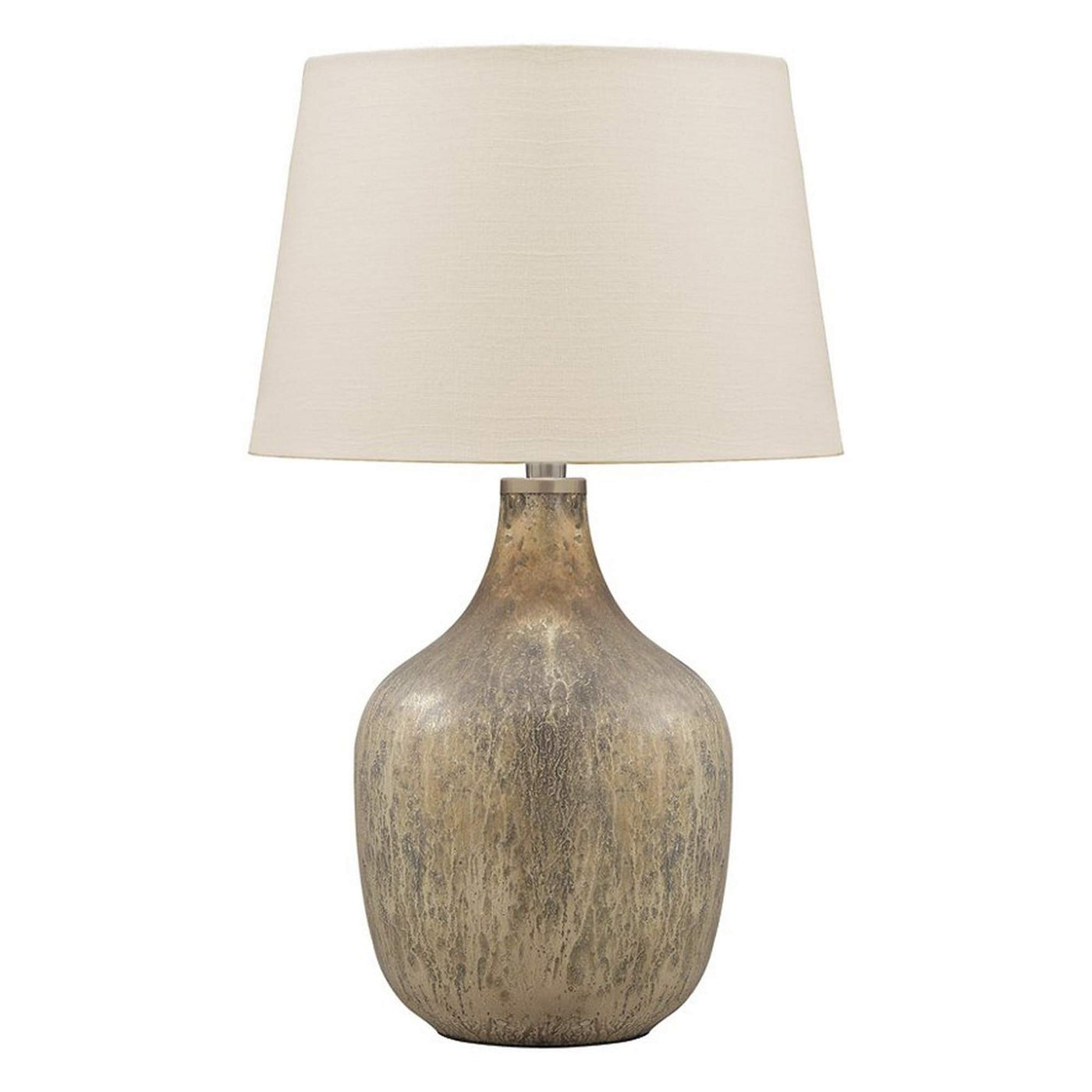 Infuse vintage vibe in your home with this jar shape Table Lamp that comes with an element of contemporary flair. The gold tone finish mercury glass base supports the lamp, featuring fabric drum shade in beige color. A perfect mixture of traditional design with a touch of modern sense, this brings uniqueness to your decor collection.